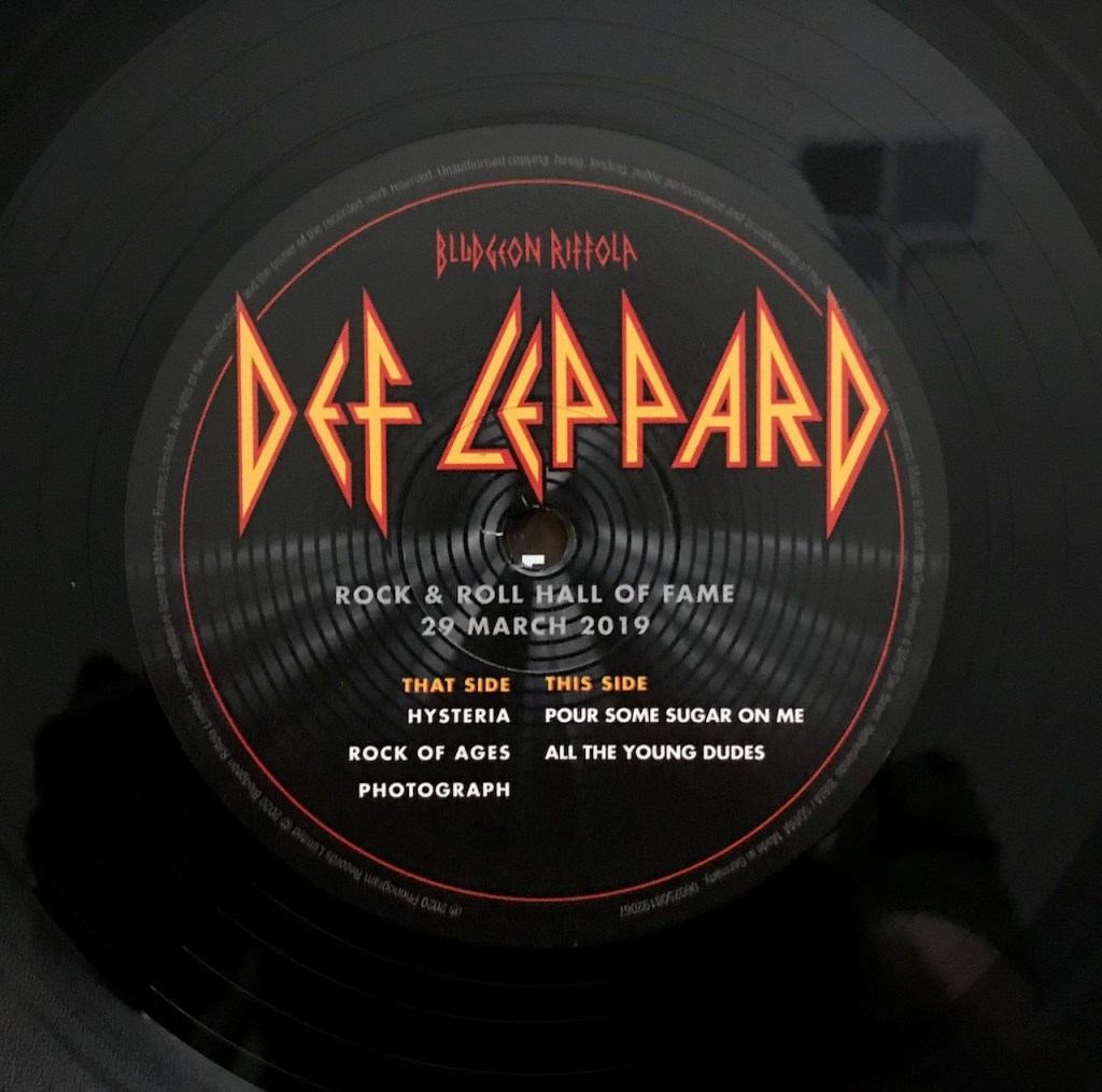 On Record Store Day, August 29, 2020, I was able to pick up a few albums and one of the ones on my list this time around was a Def Leppard release of the live performance of their Rock & Roll Hall of Fame Induction ceremony on March 29, 2019. For a band that once said, live albums were for bands that couldn’t come up with anything else, they have now put out a bunch of live material since those words years ago. I’m not complaining, just saying.
