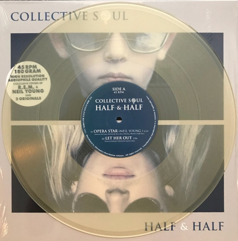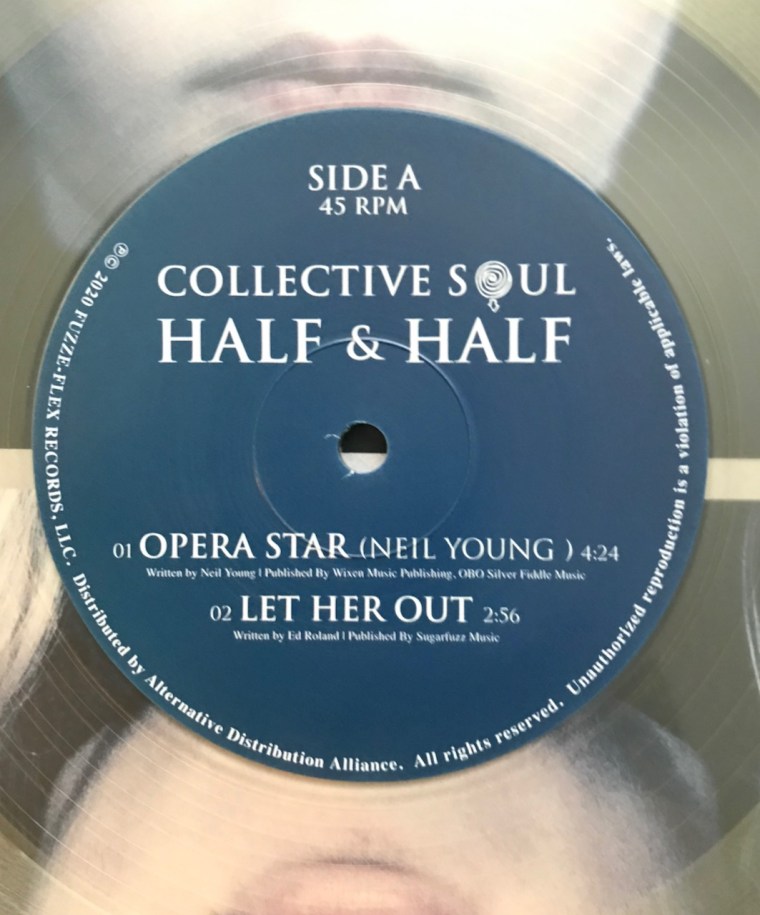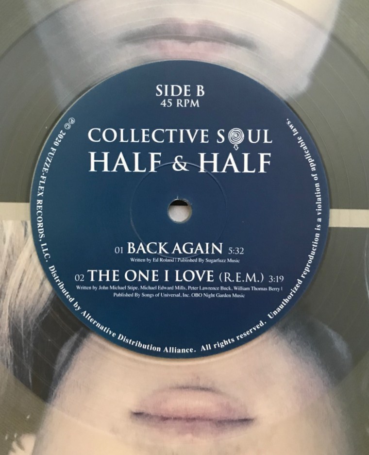 For the August 29th, 2020 Record Store Day, Collective Soul issued a 12″ EP called Half & Half. It is played at 45 RPMs and consists of 2 new songs and 2 cover songs…thus half and half. The vinyl isn’t an exclusive RSD issue, it is a First Release meaning the band will release this at a later time. I am hoping the fact that his is a clear transparent vinyl will be the exclusive RSD part otherwise the only good about it is that I got to hear it before anyone who gets the regular release.