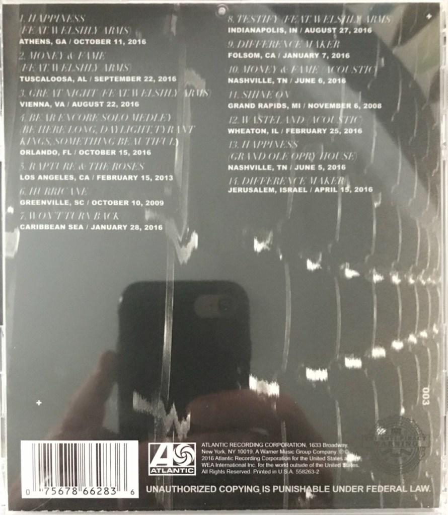 Then we get the final two songs that are both been played on this disc but there is something a little special about both. First is “Happiness” which kicked off the album. This performance is really cool because it is from the Grand Ole Opry. How many bands can say they’ve played there? Ok, a lot but it is still cool! The second one is even more special. This is the song “Difference Maker” we talked about earlier, but this version is really just Bear singing and a guitar in some domed arena or church without a microphone and his voice echos so beautifully off the ceiling. The band performed this in Jerusalem, Israel. It is really powerful especially knowing the message and the religious place they are in. Wow!