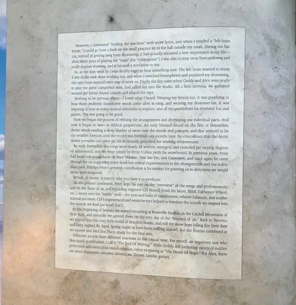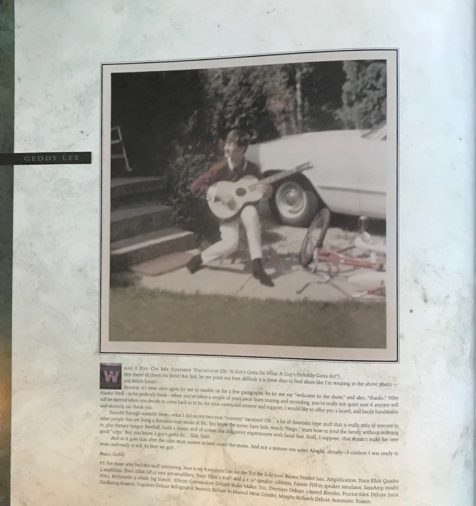 And like normal, we get the 3 page essay from Mr. Neil Peart…I would be saddened it there wasn’t one by this point…