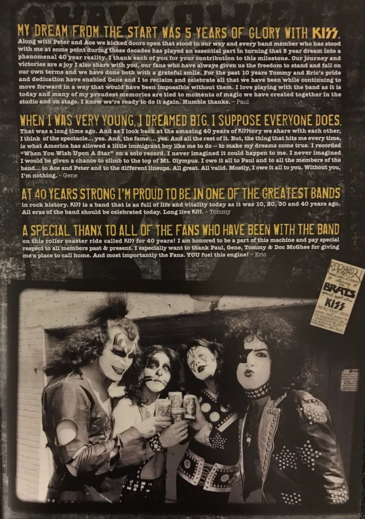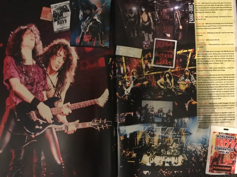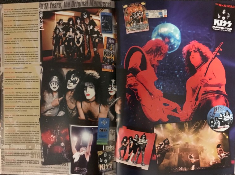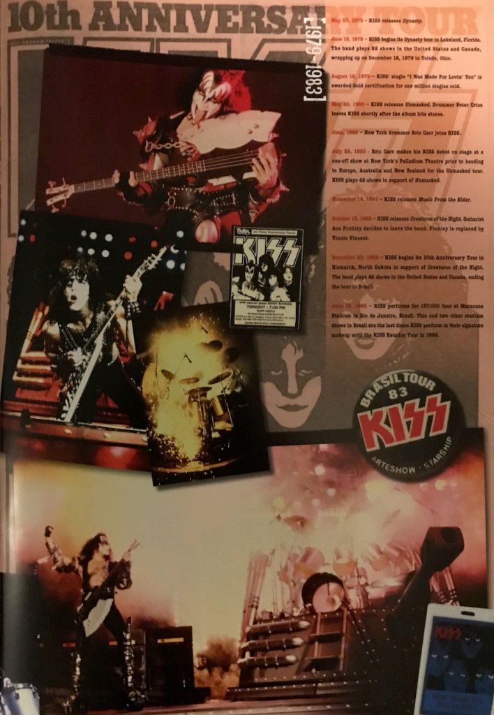 This tour book his more a history book since it is the 40th Anniversary Tour. They go through the years with make-up with some historical shots and chronologically between all the years up to today. There are some great moments captured here and each page has so much going on. On some of the pages, they have dates listing out chronologically some important dates in Kisstory. It is all done very well and the quality of this book is sensational Let’s get started.