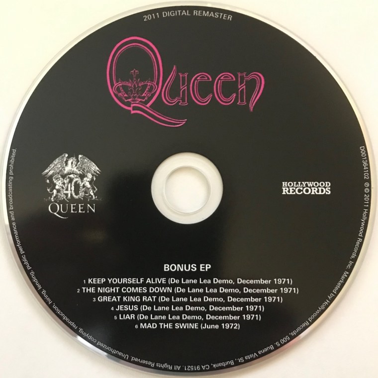The Bonus EP comes with the 5 original demos that were recorded at the De Lane Lea Studios from December 1971. The songs are rawer and in some cases they are as good or better than the album version. I really like “Keep Yourself Alive” and “Great King Rat”. One though doesn’t live up to the album version and that is “The Night Comes Down”. The drums are much more toned down as the album version is so immense and powerful. I could do without this version of “Jesus” because it takes the song draws it out to 5 minutes up from the 3:45 of the album version. “Liar” is quite different as it is definitely more raw in nature, but doesn’t capture the magic of the album version. Although it is still enjoyable even after stretching it out to over 7 minutes long.