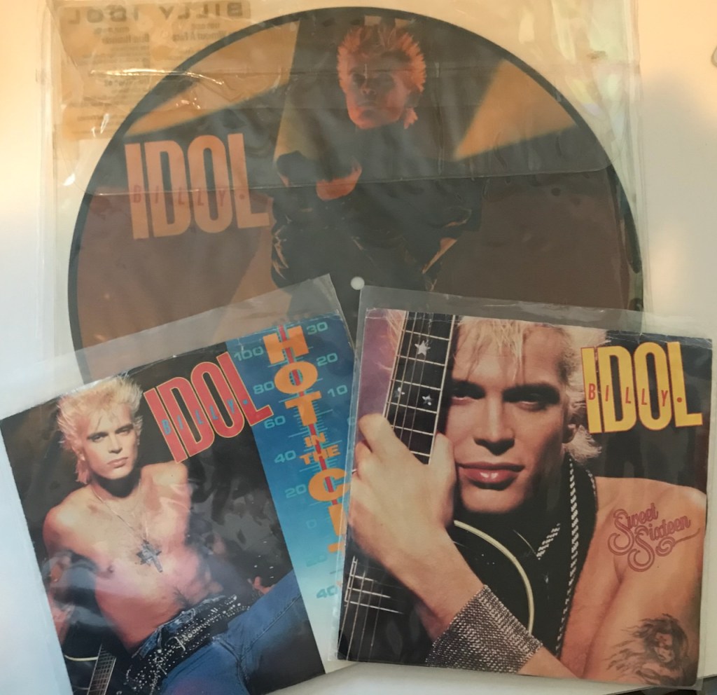 What did I find? Well, as you know, I am a Billy Idol fan and I found a 12″ Picture Disc as well as two 7″ Singles. There were more, but condition was not great on the rest so I left them there. Here are the Idol Items I found…