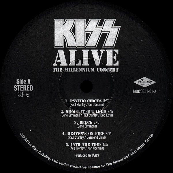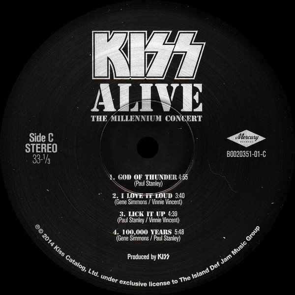 The album would see a release on November 21, 2006 when it was included on the box set Kiss Alive! 1975-2000. That box set included Alive!, Alive II and Alive III as well and since those have already been reviewed, I went with just reviewing the Millennium show as that did get a separate vinyl release of its own.