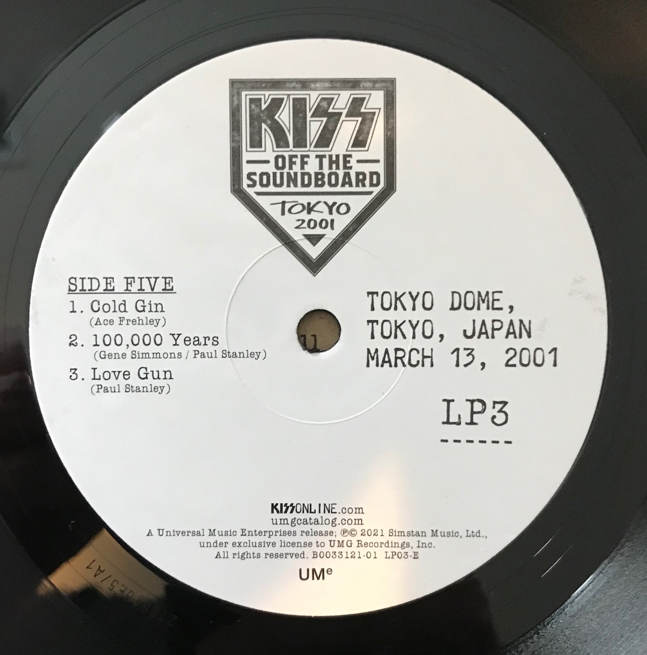 After over a year of reviewing everything Kiss and pretty much everything in my collection, we are finally to very last Kiss record in the collection…I am sure it won’t be the last as they will release more over the years to come and I will add them to the series. For now, this is it though. Kiss has finally realized they can make money on these Kiss Bootlegs that are out in the wild by finally releasing their own Bootleg Series called “Off the Soundboard”. First up for them is the show from Tokyo 2001 which is a short era of the band that has little to no representation anywhere else. It was with the line up of Gene Simmons and Paul Stanley, of course, but also features Eric Singer on drums and Ace Frehley on lead guitar. This line-up was only around a very short time right after the first Farewell Tour that was really a farewell to Peter. And it is this line-up that is the major selling point which is why they highlighted it on the front cover.