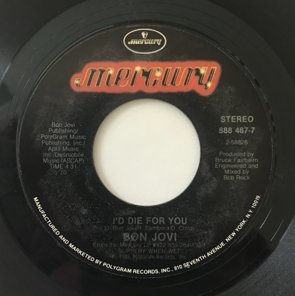 The B-Side is the song “I’d Die For You” and kicks off with a lot of David Bryan’s keyboard which is ver metallic sounding and then has Richie doing a guitar riff which sounds a little distorted. The song is classic Bon Jovi 80’s glam pop rock and I have to admit the song is a little dated it in its sound. It isn’t holding up well. It is too generic and derivative of songs at the time. It doesn’t mean I don’t like it, but I realize it is still stuck in the time period unlike “Wanted Dead or Alive” which to me sounds a little timeless. Bon Jovi was good about putting unreleased tracks as the B-Sides back then so a little disappointed this wasn’t one of them.