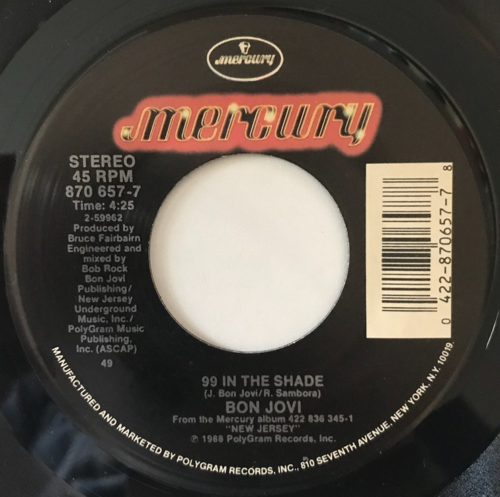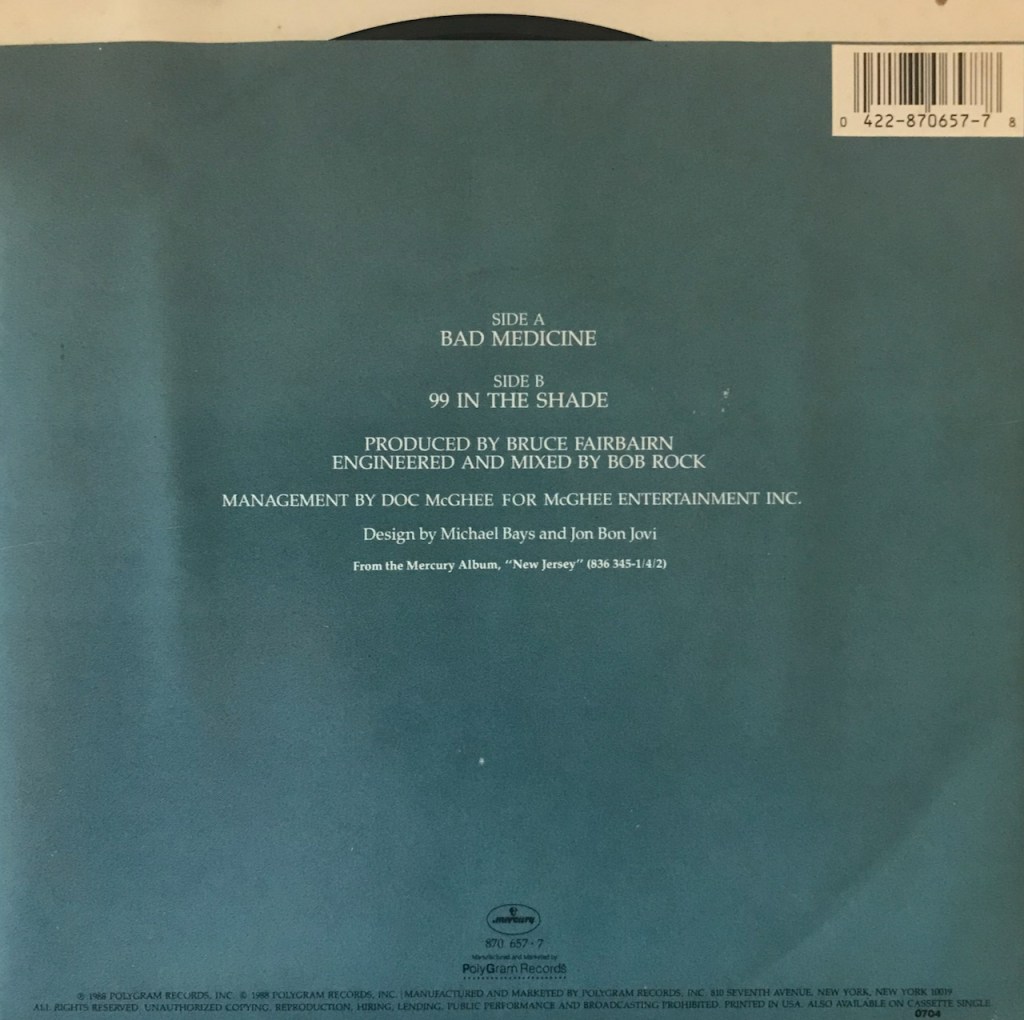 The version I have on 45 is the standard U.S. release with the B-Side as “99 in the Shade”. The only really good thing about it is that the song “Bad Medicine” is actually the single edit which cuts off more than a minute off the album version which sits around 5:16 vs 3:52 for the single.