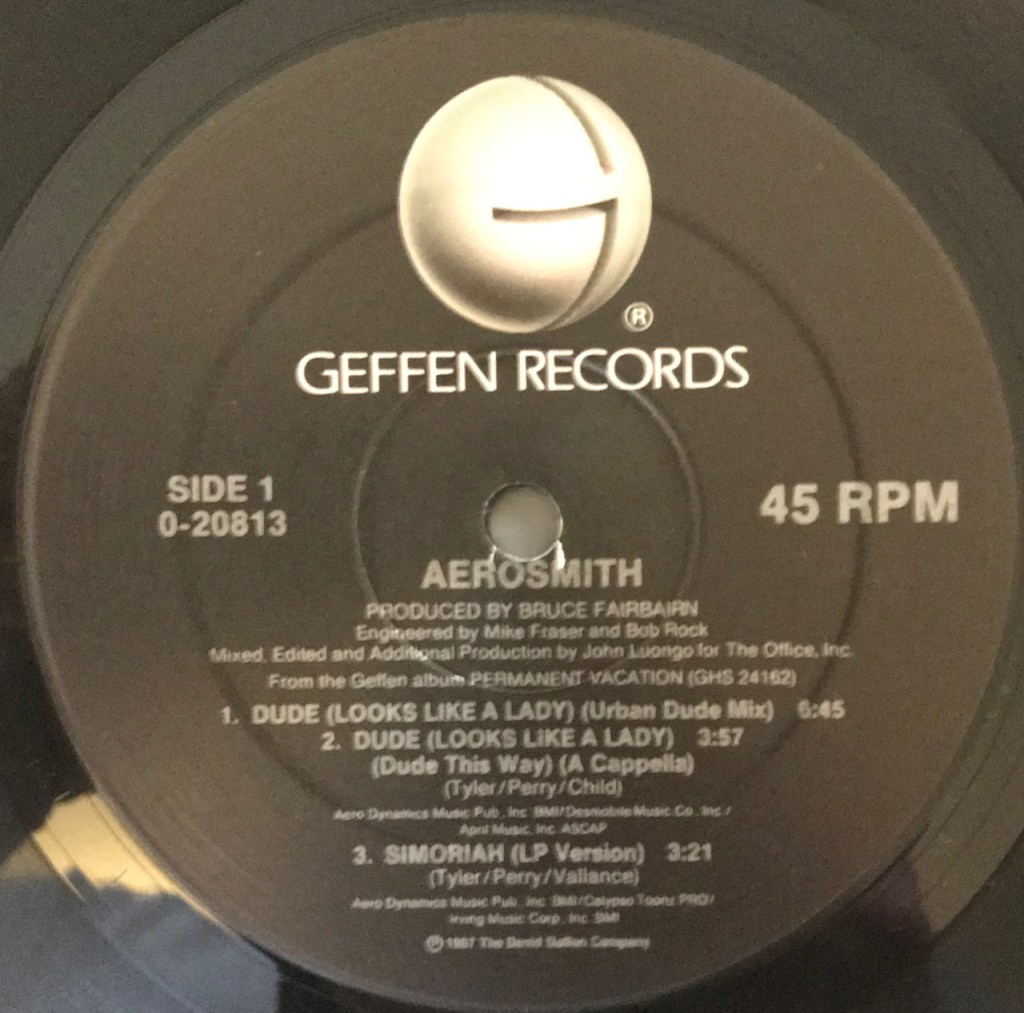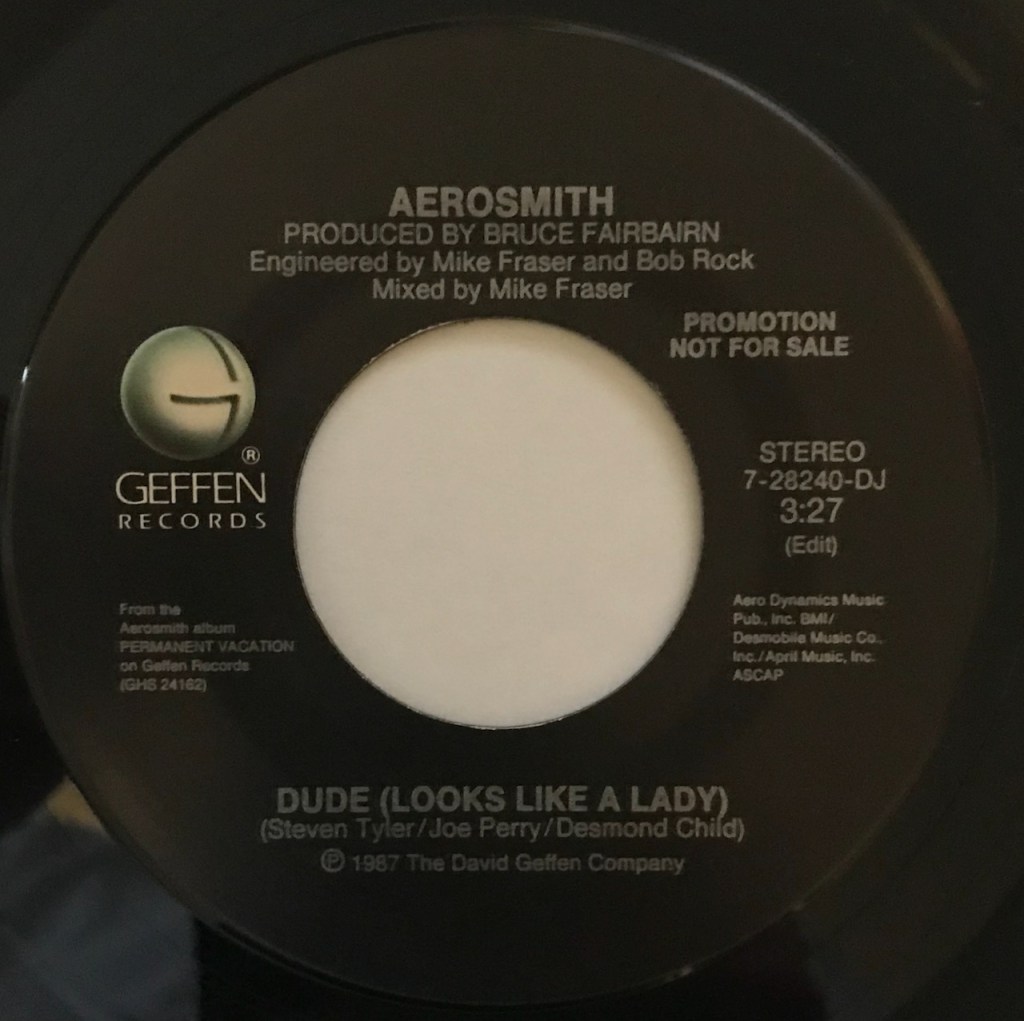 We have a little break here from the album reviews in the Aerosmith Collection Series. As it turns out, I have 4 singles from ‘Permanent Vacation’ and we are going to go through those over the next few weeks. First up is the second single from the album “Dude (Looks Like A Lady)” and this one is a two for the price of one treat as I have both a 7″ Single and a 12″ Maxi-Single of the song. Since I don’t want to completely bore you to tears with two separate posts on the same song, I decided to them both together in one giant treat.