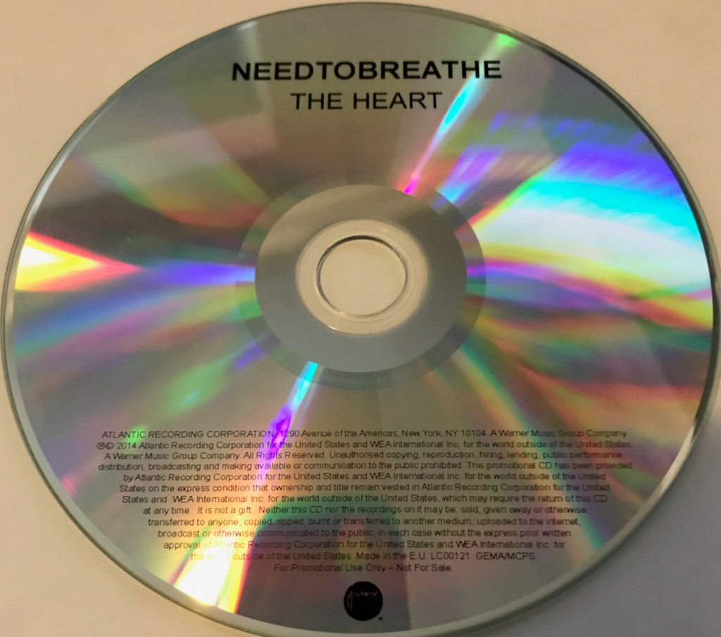As you know if you follow this site, I am a huge fan of Needtobreathe. I have all their albums on vinyl and now I am going after the cool and unusual stuff on CDs. The first thing I found was a promotional single for the song “The Heart” off their upcoming 2014 album ‘Rivers in the Wasteland’. There is a sticker on the front of the plastic wrapper that gives you all the promotional information that is upcoming for the band including the “Impact Date” or release date of the single on April 21, 2014. it mentions the producer who was Joe Chiccarelli who had worked with The Raconteurs, The Killers and U2. It even goes through the bands upcoming performances on TV and BBC Radio. Check it out below.