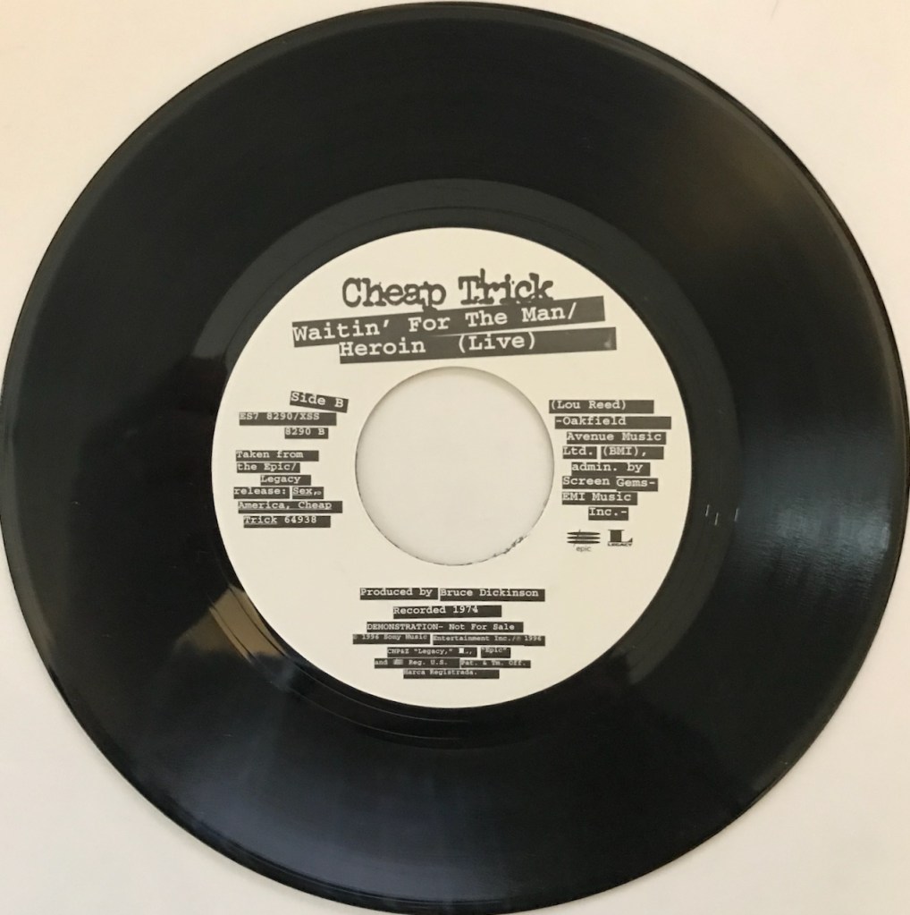 The B-Side is a live version of the Velvet Underground’s “Waitin’ for the Man” and “Heorin” sung by Tom Petersson and let me tell you, they are wonderful. Musically, the band is killing it and Rick’s guitar work is stellar with Tom laying down some groovy bass and Bun E.’s fills are top notch. Tom’s vocals are dirty, gritty and full on Lou Reed and it is quite stellar. It has that same Velvet Underground vibe like I don’t give a shit and this is what we do and you are going to like it…and you do!! The song was recorded way back in 1974 at The Brewery in Lansing, Michigan long before Cheap Trick’s first album. I’m not even sure of Robin had joined the band yet, so someone can let us know that answer, that would be cool.