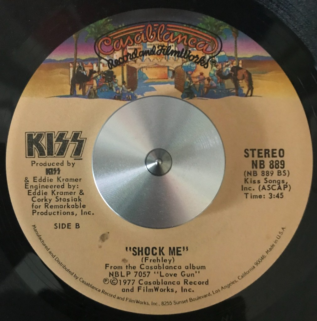 My version is the standard U.S. version, with no picture sleeve. It has the standard Casablanca/Filmworks sleeve which is pretty basic. The B-Side of the song might actually be better than the A-Side is it is Ace Frehley’s song “Shock Me”. More on that later. First let’s discuss the A-Side.