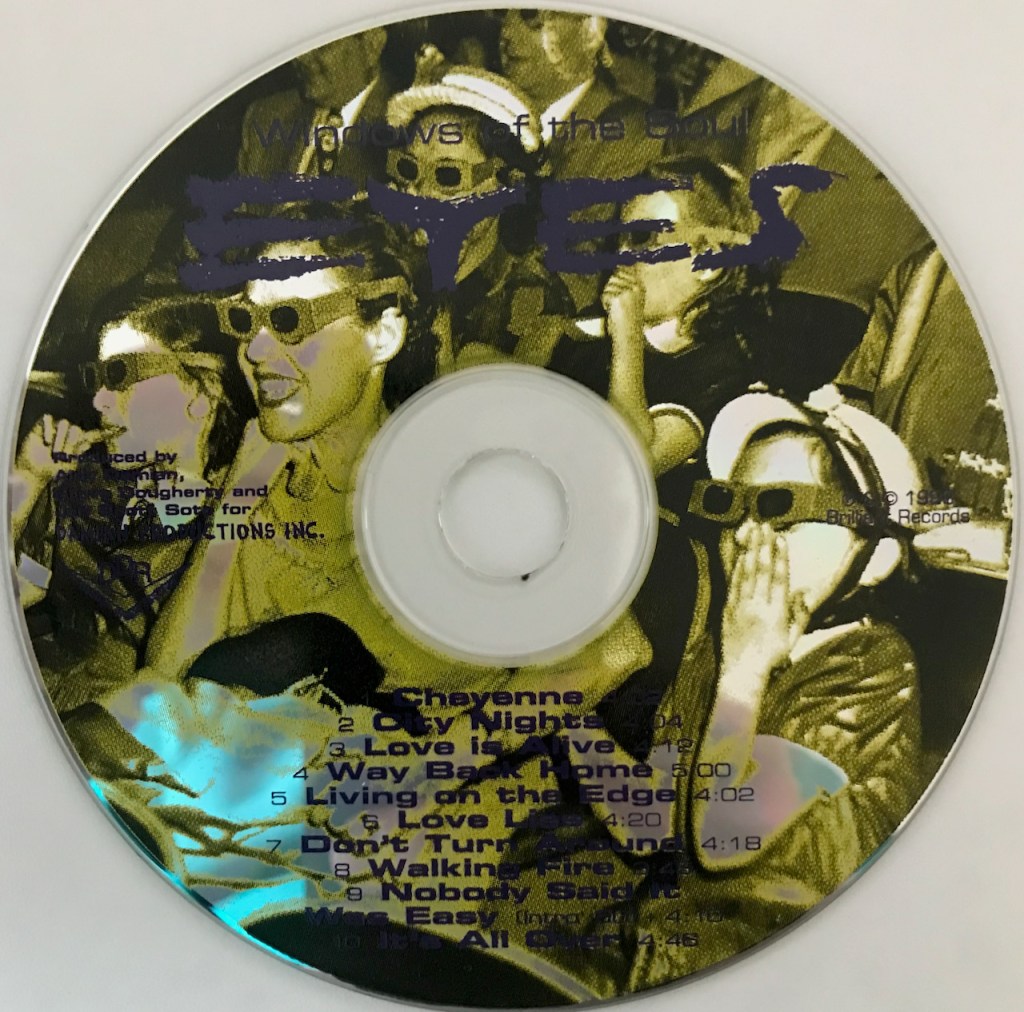 Is it really a new album? No, not really. All it is are the demos and original tracks Eyes had done and submitted to their label for the first Eyes album. The label wasn’t happy with them so they went back and re-recorded the album and cut some new songs. The record company might not have thought them good to begin with, but still decided to package up the demos into an album that came out in 1993 only in Scandinavia which is the version I have as you can see the 1993 on the back cover. The album was released elsewhere in Europe in 1994. The band on this record included Aldy Damian, Steve Dougherty and Jeff Scott Soto. The band didn’t have a bass player so on the demos were Chuck Wright (Guiffria) and Mike Porcaro. On keyboards you get either Jeff Naideau or Todd Jasmin. Out of the 10 songs, only three of these were on the debut and the demos are pretty great in their own right. Let’s get to the music.