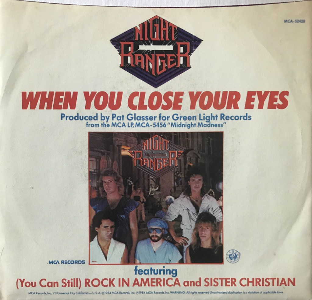 For Night Ranger, how do you follow-up your biggest hit, “Sister Christian”. Well, you release another ballad and they did it this time with “When You Close Your Eyes” the third single off their 1983 album ‘Midnight Madness’. It was released on July 14, 1984 as a single and it didn’t do as well as “Sister Christian” as it only went to #14 on the Billboard Charts. Only..right! Most bands would kill for that. It did help continue to catapult the album to well over 1 million copes giving them their first and maybe only Platinum album.