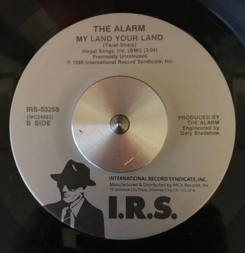 My copy is awesome even it is the plain old U.S. version. First, I love the I.R.S. labels on the single itself. I find them to be really cool. Second, the B-Side is “My Land Your Land” which is a previously unreleased track recorded during the Hurricane Sessions.