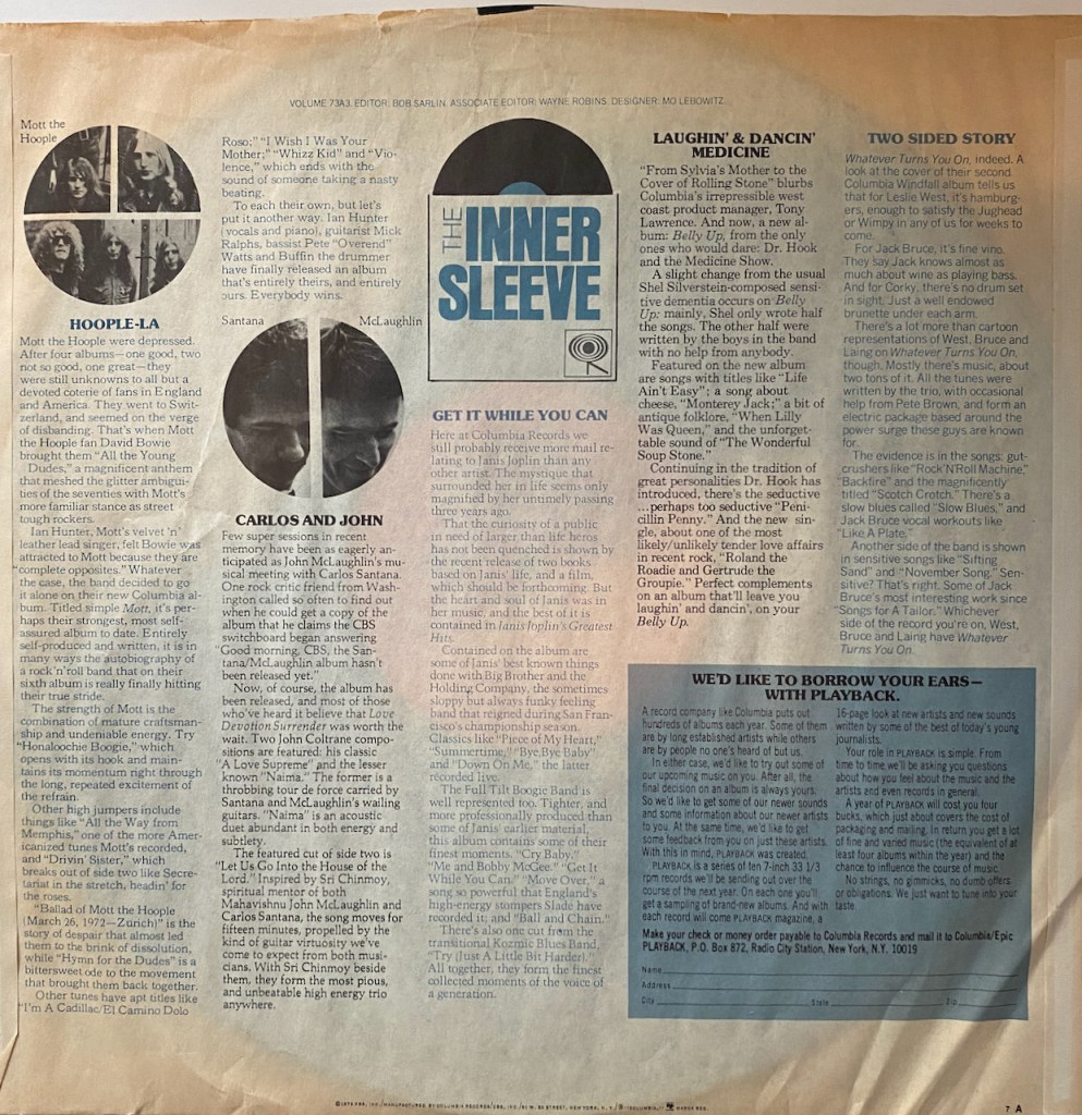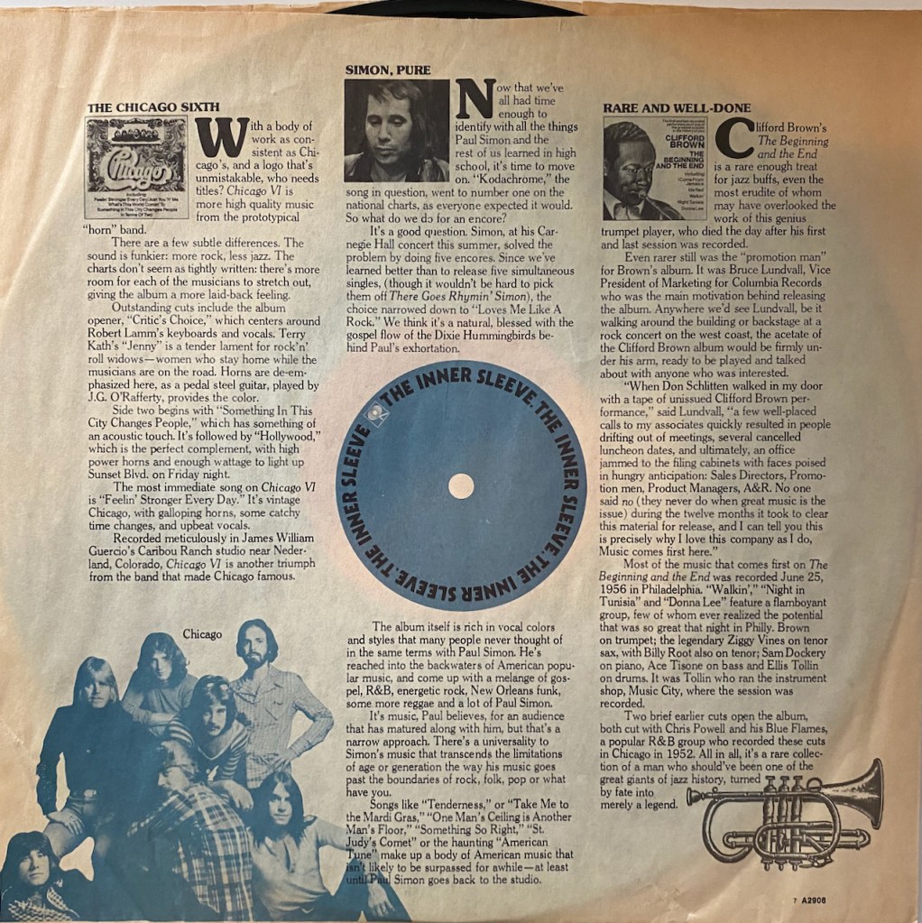 My album cover is pretty old and pretty beat up, but man does the vinyl sound sweet. Amazingly clear. It is a Pitman Pressing from 1971 and not very rare or sought after. You could easily pick this one up for $1-$5 especially if it is in as bad a shape as mine. My inner sleeve is interesting. It has little articles about a lot of bands at the time including Chicago, Paul Simon and Carlos Santa to name a few. Not sure if this was originally in it or not, but a cool piece of history in my opinion. Alright, let us get to the music, shall we.
