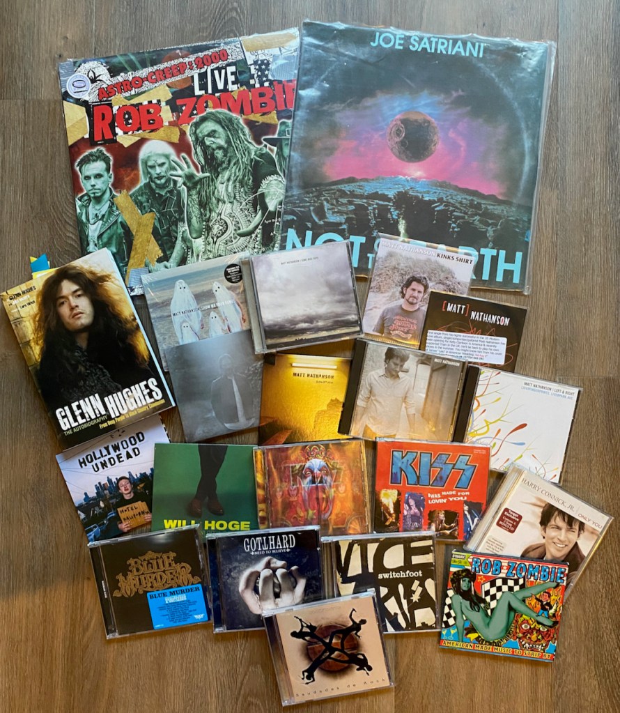 And that is it. Still a lot, but i think less than a lot of the more recent months and I’m okay with that. Vinyl prices are still crazy which is why you see more CDs than vinyl. Plus, what is left on vinyl that i want is pricey so I am being way more selective. CDs, cheap right now and I can grab a bunch for what one vinyl would cost. Here is the whole lot in one picture…