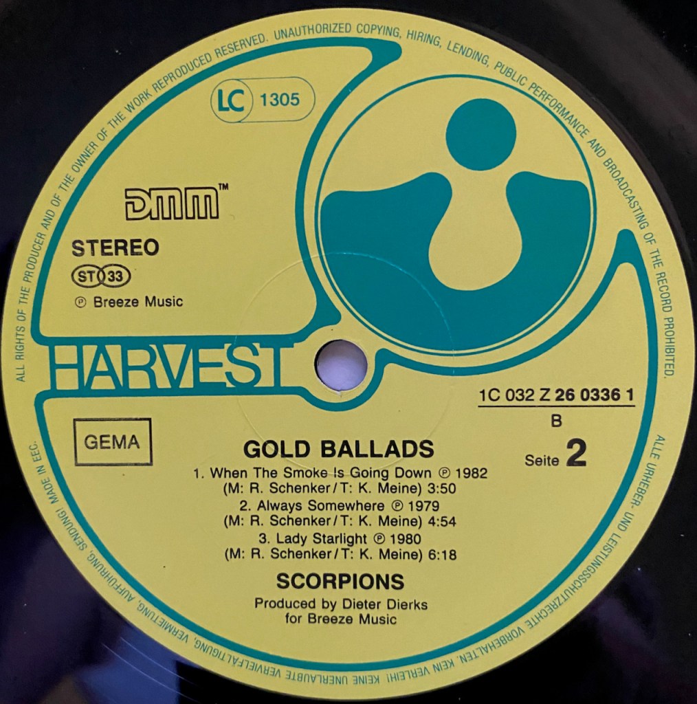In the U.S., the label was capitalizing on the Scorpions success by releasing a compilation, so why not the European labels. 1984 was a big year for the Scorpions so lets milk it for what we can was the attitude of the day!. With the massive success of their ballad “Still Loving You”, why not release an E.P. of their best ballads and pick those from four of their best albums, ‘Lovedrive, ‘Animal Magnetism’, ‘Blackout’ and ‘Love at First Sting’. And ballads are big sellers, so it made perfect sense.