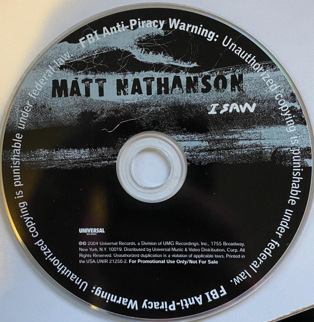 In my further quest for owning all Matt Nathanson items listed on Discogs, I found another gem. This Promo CD is for the song “I Saw” off his 2003 album and major label debut called ‘Beneath These Fireworks’. The song was from 2004 and sadly it didn’t chart. No real surprise as he’s never been a big radio hits guy (even though his stuff is better than radio). The album didn’t do well either and shortly after releasing his first major label debut on Universal, Universal dropped him. Such is the story of so many artists and bands.