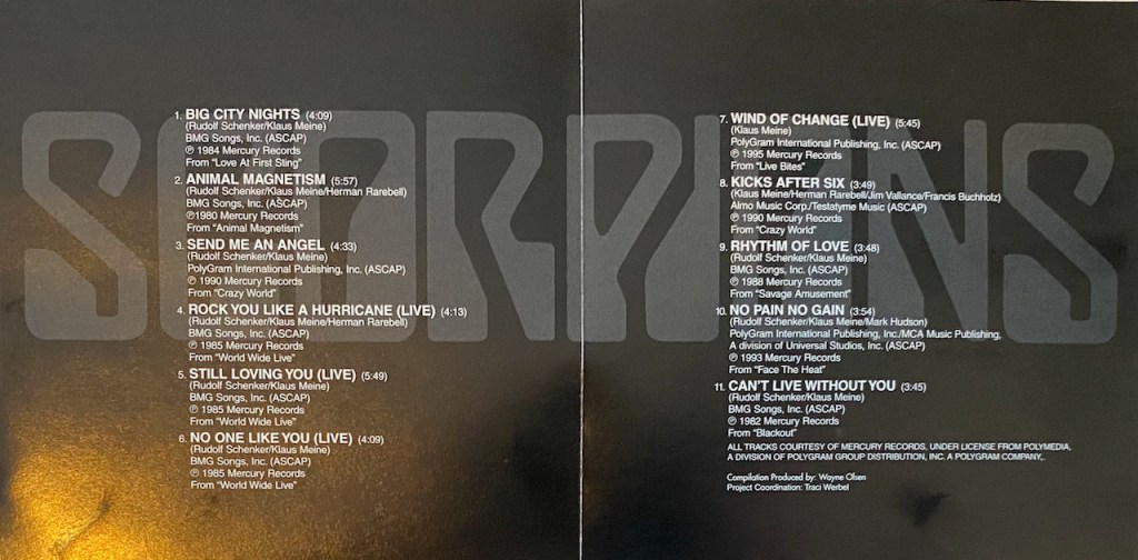 Scorpions is no stranger to releasing compilation albums. In fact, there are 28 official greatest hits compilations over their career. That is insane. Out of those 28, some are worth getting, like ‘Deadly Sting’ or ‘Best of Rockers ‘n Ballads’ and some are not…like this one!! This is a complete money grab except it was released at a time where Scorpions weren’t getting much publicity so I am sure this was overlooked by everyone. There are no unreleased tracks, no single mixes, no nothing excited that would make this worth getting. So why do I have it? I found it in a bin for like $2 so why not. It isn’t worth anymore than that, I promise!