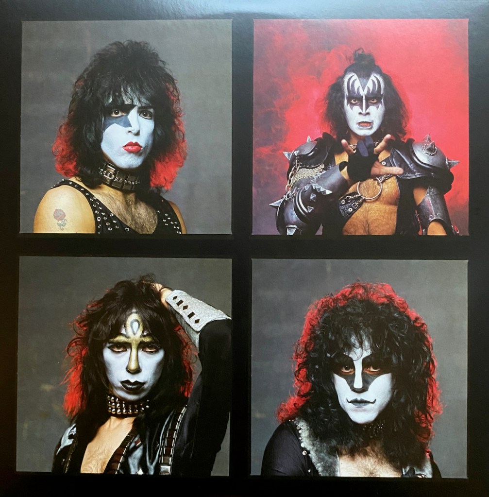 The album is packaged in a tri-fold album jacket with some stunning pictures included. The first two spaces have a large group photo, then on the 3rd tri-fold, you get individual shots of the members on both the front and pack of that section. Although the cover has Ace, these pictures all include Vinnie, who is actually on the album…not all songs, but most.