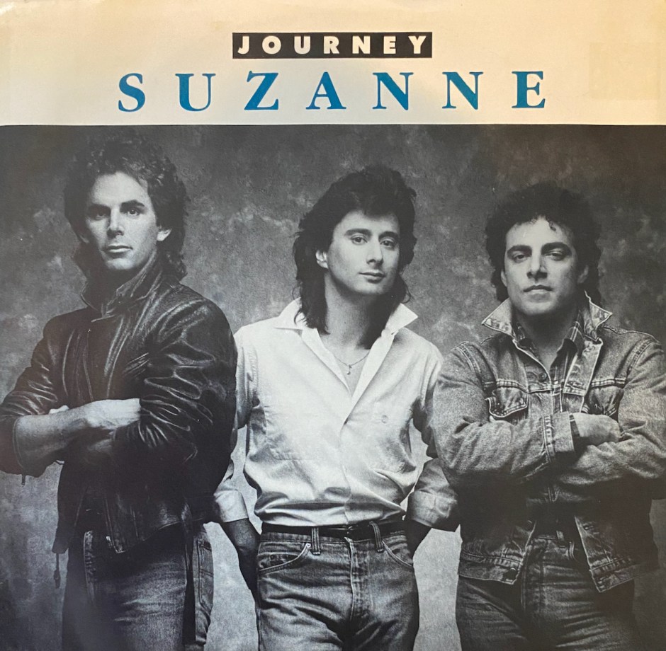 Journey’s ninth studio albums was 1986’s ‘Raised on Radio’ and the second single off the album was “Suzanne” which was written by members Steve Perry and Jonathan Cain. The song went to #17 on the U.S. Charts and was one of three Top 20 hits from the album. An album that would reach #4 and sell over 2 million albums going double platinum. The band at the time was really only Steve Perry, Jonathan Cain and Neal Schon as Ross Valory was out and during recording, so was Steve Smith which is why you only see 3 guys on the cover of the single.