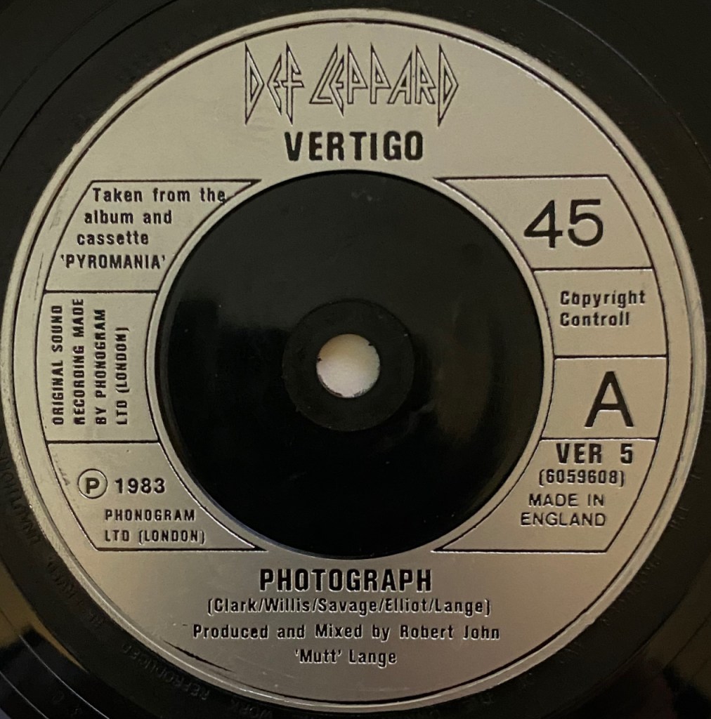 I love to collect singles with picture sleeves and I love to find them in the wild. I generally will never buy a single on eBay or Discogs. However, there was one big exception and that was for the song “Photograph” by Def Leppard. The song is off the album ‘Pyromania’ and was the very first single released for the album and it was huge. It was released in January 1983 and went to #12 on the Top 40 and #1 on the US Mainstream Rock Chart for an impressive six weeks. The U.K. didn’t see them have as much success as it only went to #66, but the band was not overly loved in its home country because they felt the band were sellouts to the U.S. market..which truth be told, they were. But the single I wanted was a U.K. only release and I had to buy it online as I wasn’t expecting to ever find it in the wild in the U.S.