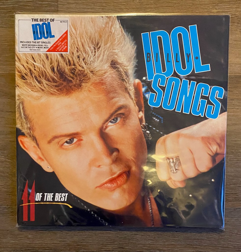 And then there was a show I recorded with Grant Arthur at Grant Rock’s Warehaus on Billy Idol’s Chrysalis years and there was one vinyl I discovered I didn’t have…well…after that show I found the best one (it comes with a free 12″ Single from the UK), so I bought it to add to the collection…It is The Best of Billy Idol…