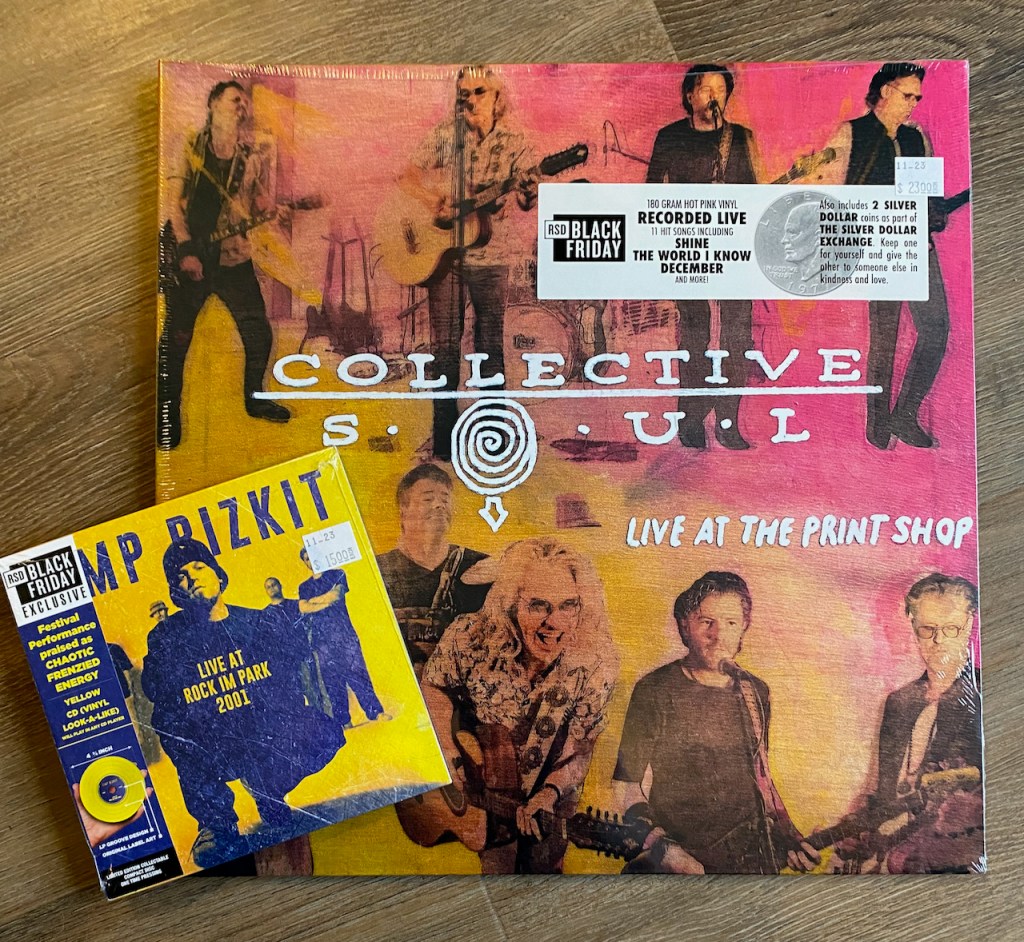 And we aren’t quite done…there is still they items I picked up for Record Store Day Black Friday. I was able to get the main thing I wanted which was the new Collective Soul live album as well as the CD for the Limp Bizkit live album. I don’t collect Limp’s vinyl so wasn’t about to start now.