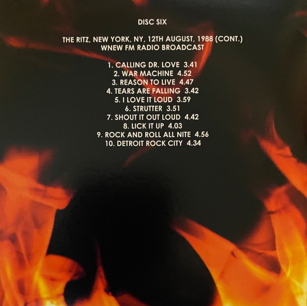All your one stop KISS Live shopping in one box. That Ritz show from ’88 is awesome. I wish they would put out something from the Dynasty tour officially, maybe at some point. Some good titles in here John as well as great job showing all the pics etc. from each show.