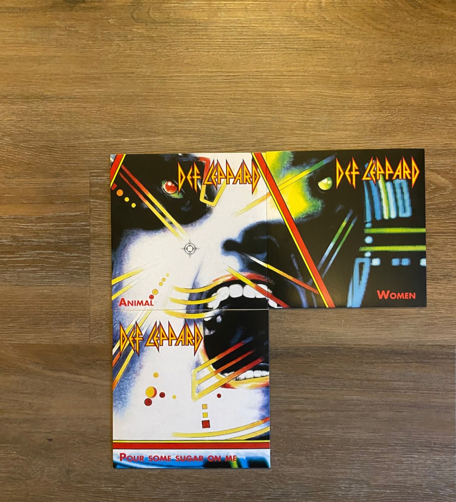 Now, I actually had all the 7″ Singles at one time, but I was always missing the final two puzzle pieces. So, when the band released the Hysteria Singles Box Set, I was finally album to finish the puzzle of the Hysteria Cover art. We will create this picture as we go trough the singles. First up…”Animal”…then “Woman”…and now we have “Pour Some Sugar On Me”…