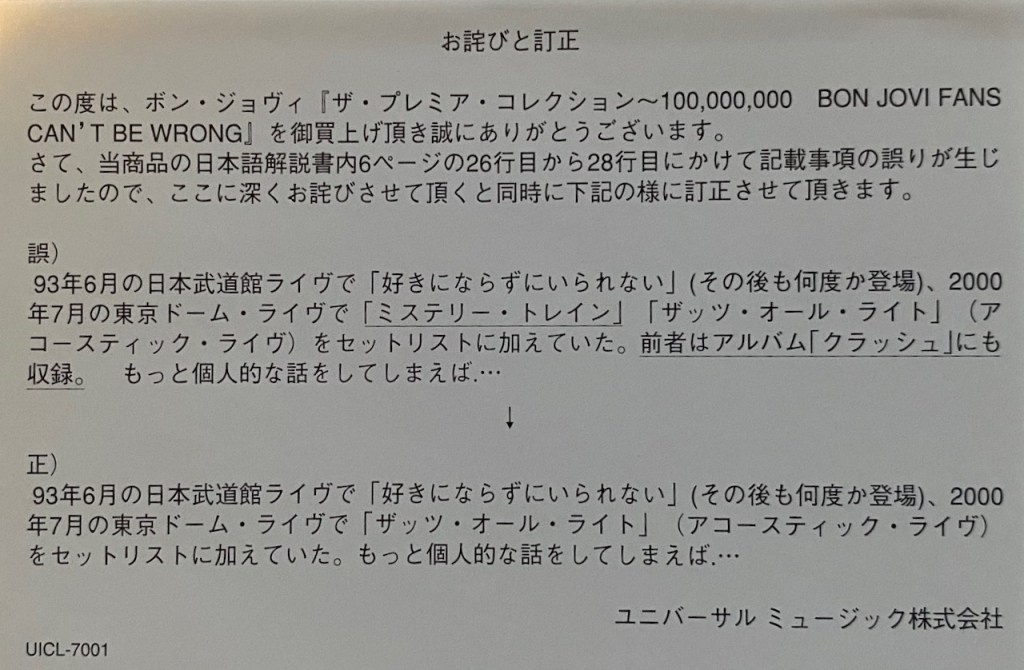 - Bon Jovi – Tokyo Road: Best of Bon Jovi (2001)