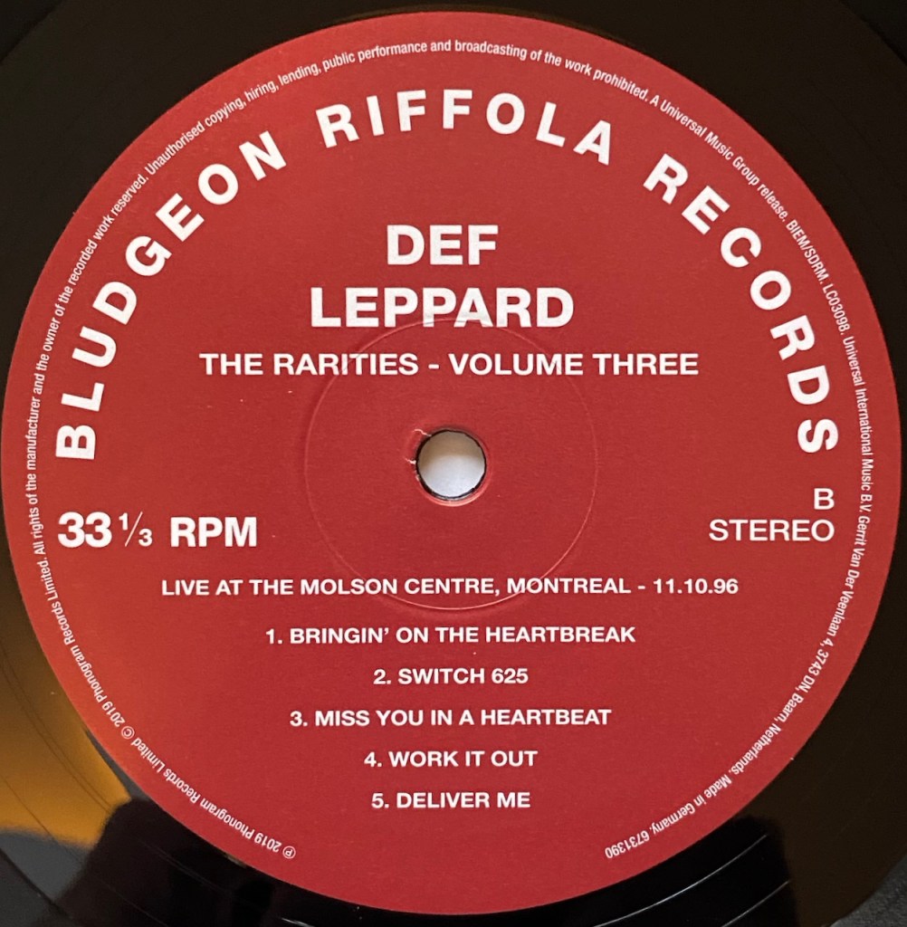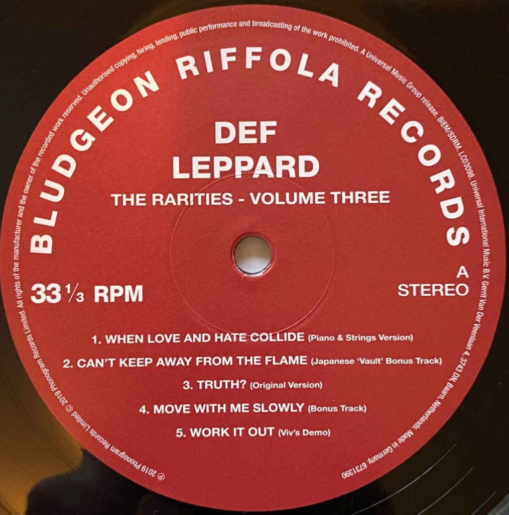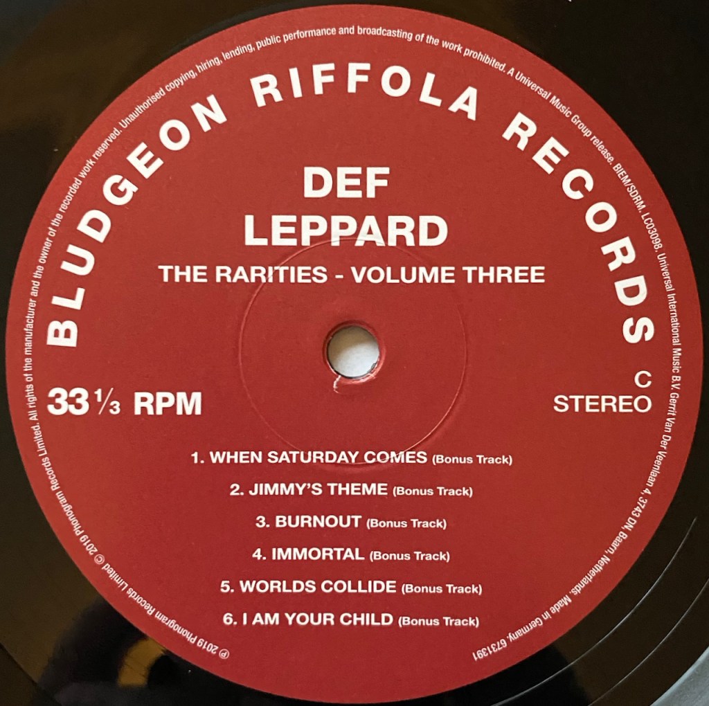 On June 21, 2019, Def Leppard released the second set in their four volume The Collection box set. There is a CD and a vinyl version of the set and my set is the vinyl version. It is 10 LPs and contains the albums, ‘Adrenalize’, ‘Retro Active’, ‘Slang’ and ‘Euphoria’. It also contains 2 Rarities collections called Volume 2 and Volume 3. Since we have already discussed the albums in this set, it is time to start with the rare tracks now and first up we did ‘Rarities Two’ of the set last week so I hope you enjoyed that one. This week, it is another 2 LP release and it is called ‘Rarities 3’. It also contains some rare tracks and rare live performances and like ‘Volume 2’, the songs are from the years surrounding these four albums.