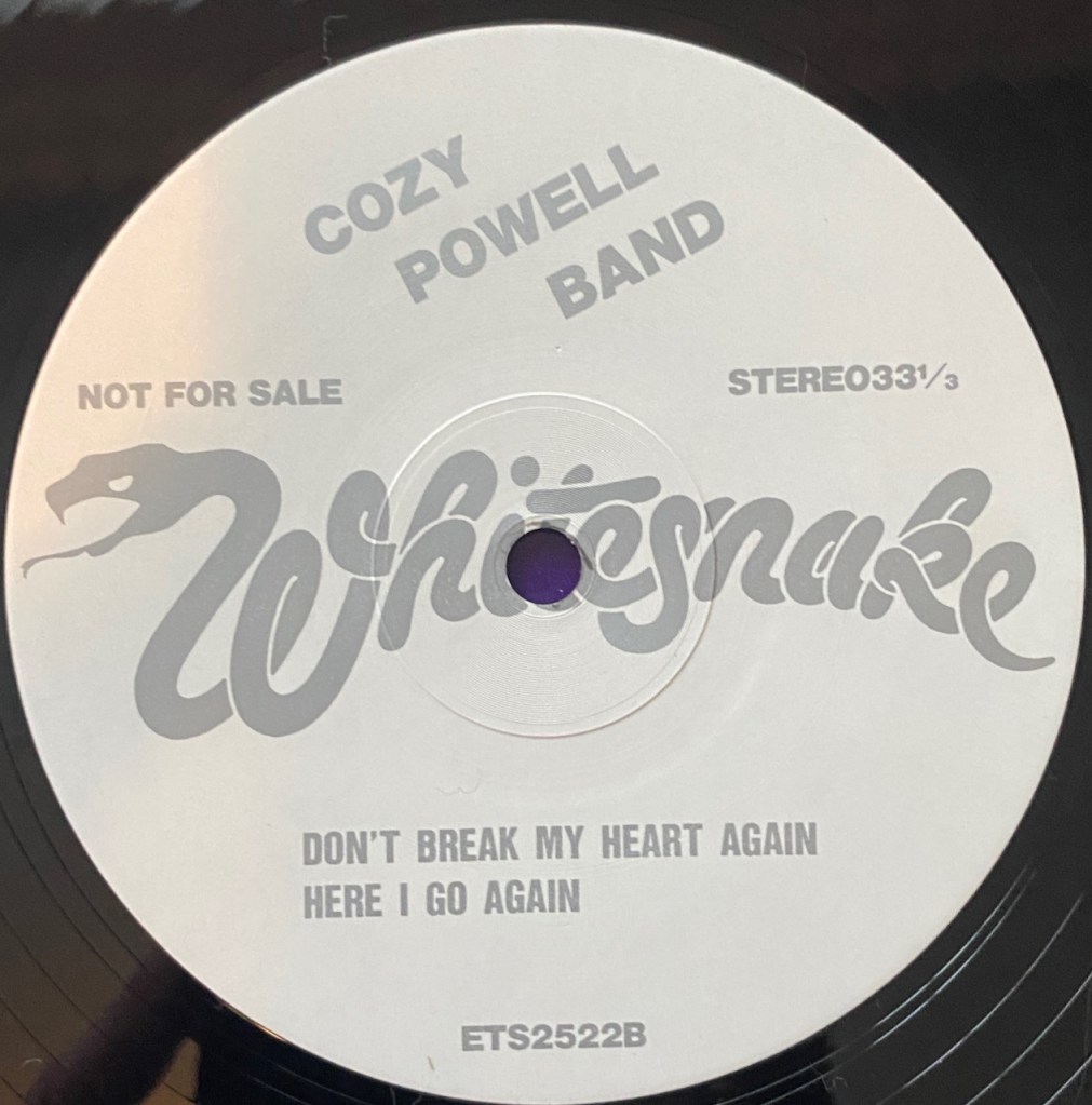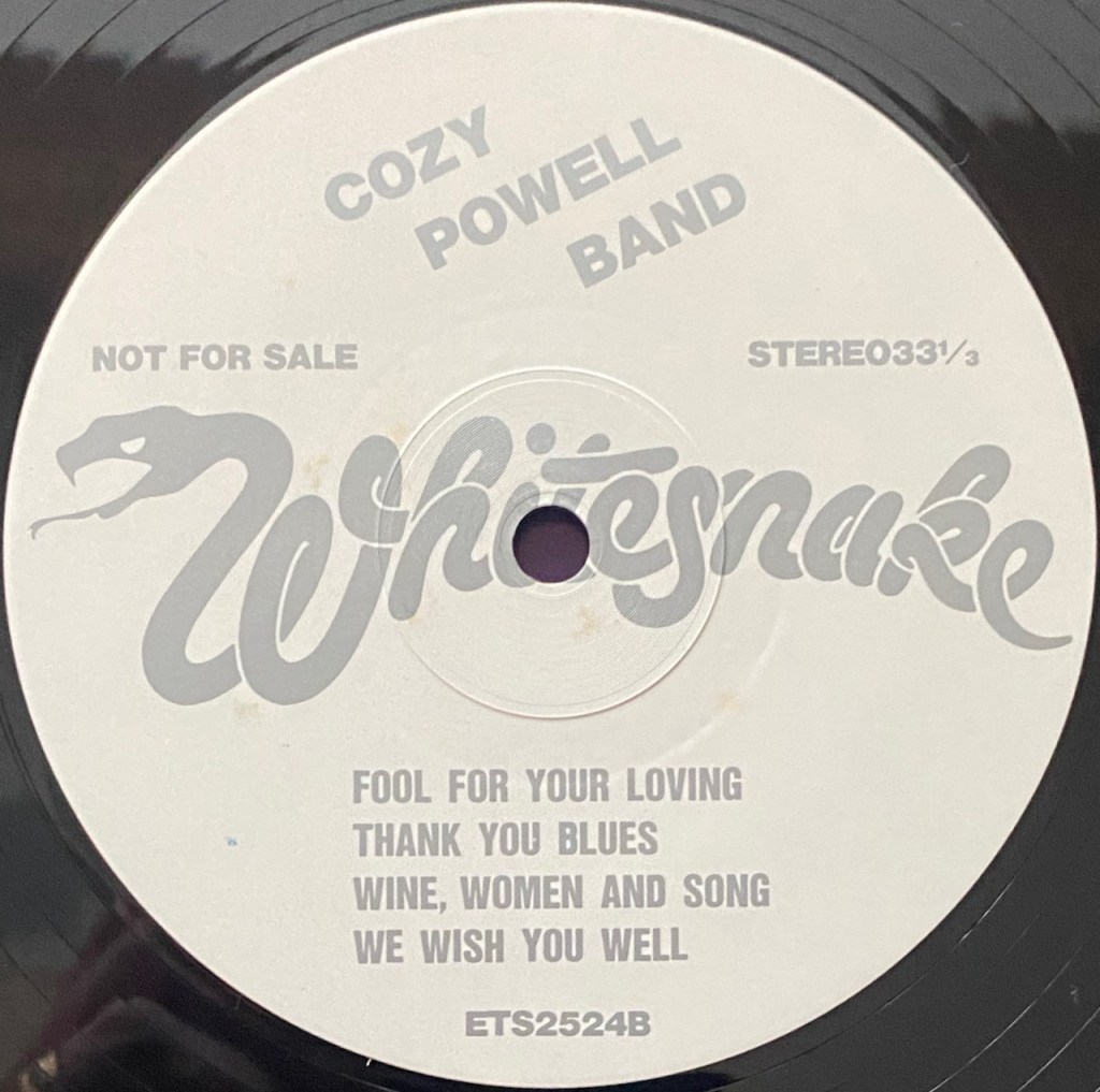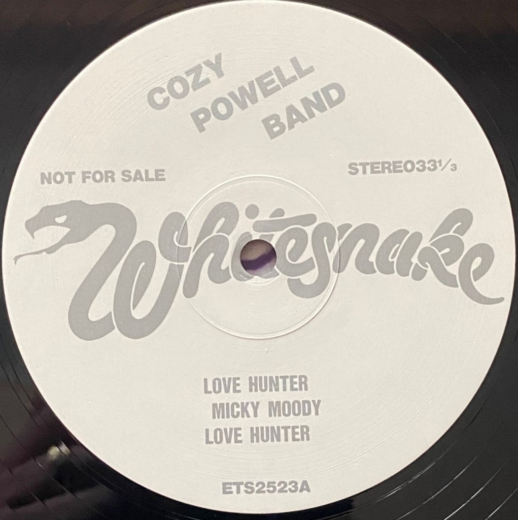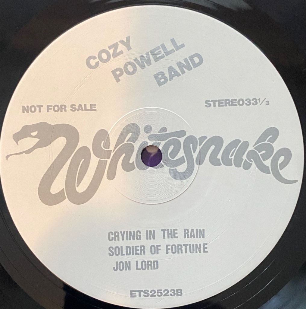 But what I can tell you is that they set this bootleg up to look like a promo. It has tour dates listed on the back for some UK shows. If that wasn’t enough look at the labels and you will see is “Not For Sale” listed on each label. And what you will also notice is at the top of the label it says “Cozy Powell Band”. Man, that would piss off David I am sure. At least it does say Whitesnake in that really cool logo across the center of the label. You gotta love bootlegs.!