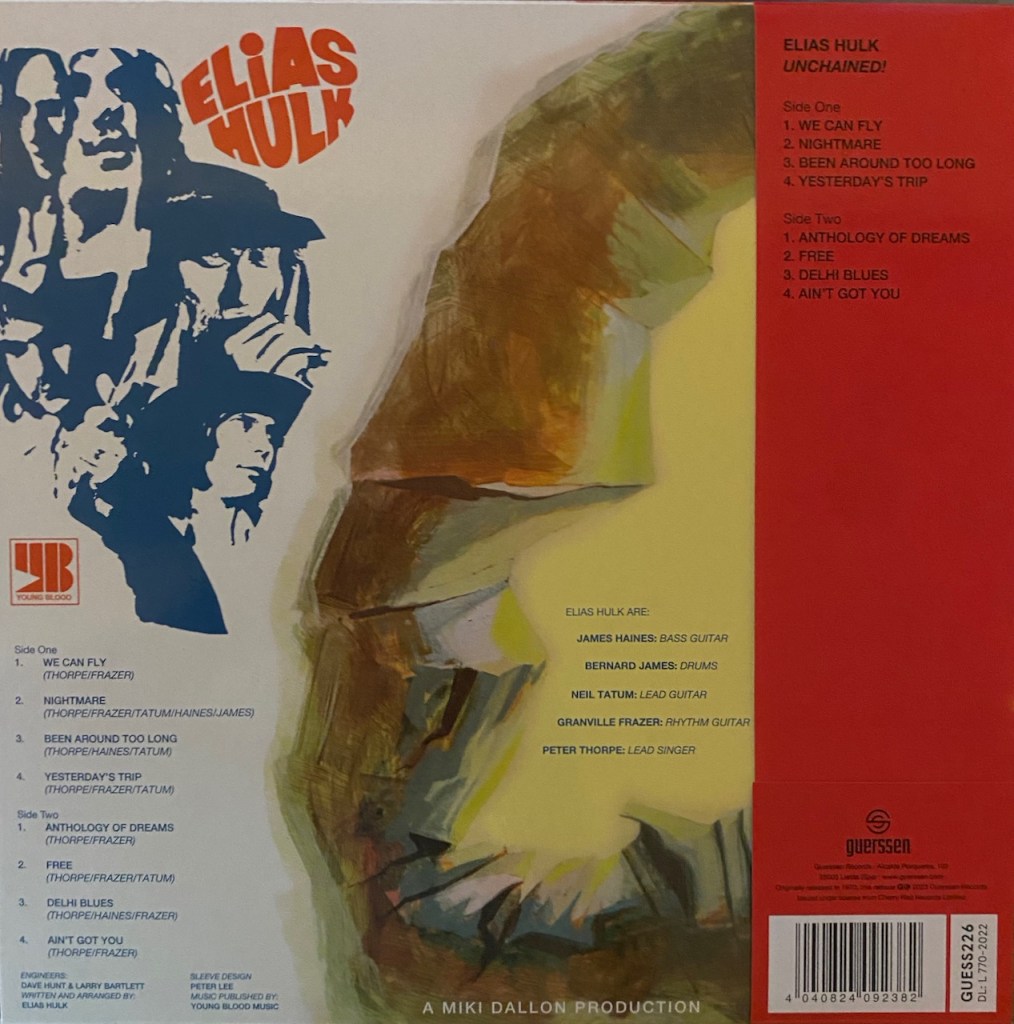 For this review, we are going to look at a band that had one album and was done. A One And Done band called Elias Hulk. The album was released in the UK sometime back in 1970. The band was originally called Alias the Hulk due to their love for Marvel Comics and The Incredible Hulk. Eventually the name was shorted to Elias Hulk. The band consisted of members James Haines (Bass), Bernard James (Drums), Neil Tatum (Lead Guitar), Granville Frazer (Rhythm Guitar) and Peter Thorpe (Lead Singer). And as far as sound, they are a cross between a heavy bluesy rock with some psychedelic hard rock mixed and some Eastern elements that add a cool uniqueness to their sound. And if that wasn’t enough, it is a little proggy as well. I would say that it is a pretty accurate as we definitely have some heavy moments and then some not quite so heavy, but all sounds are still rock and still kick ass.