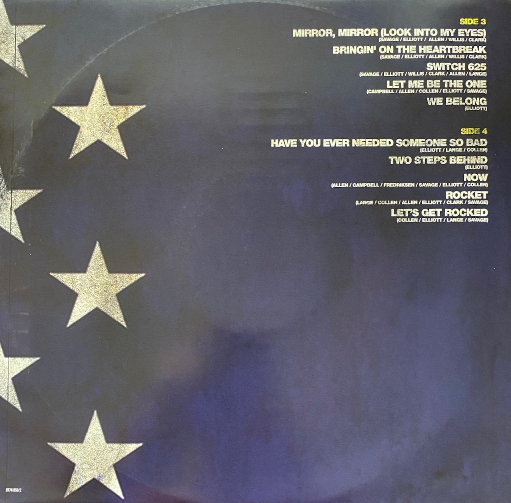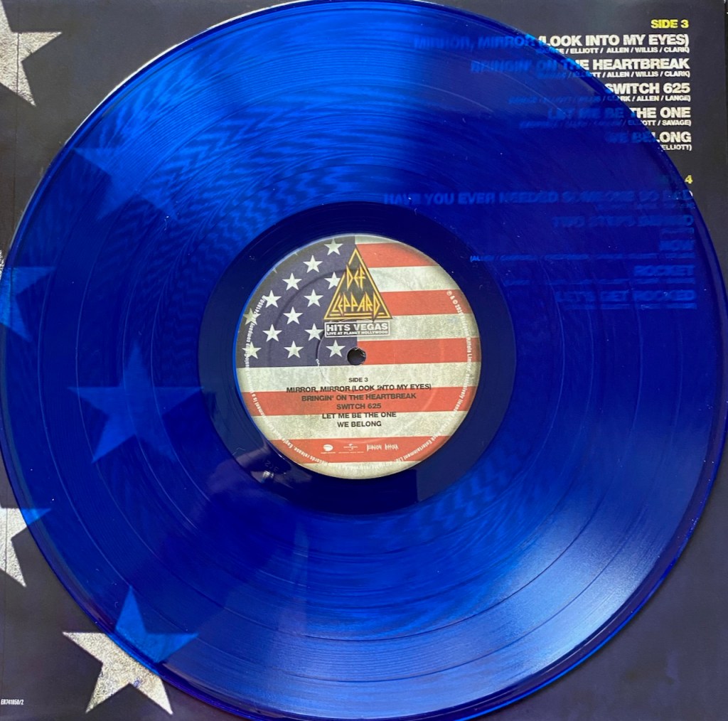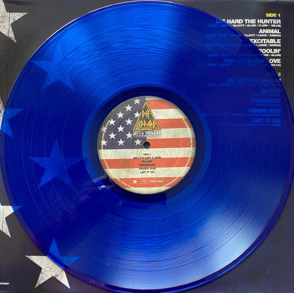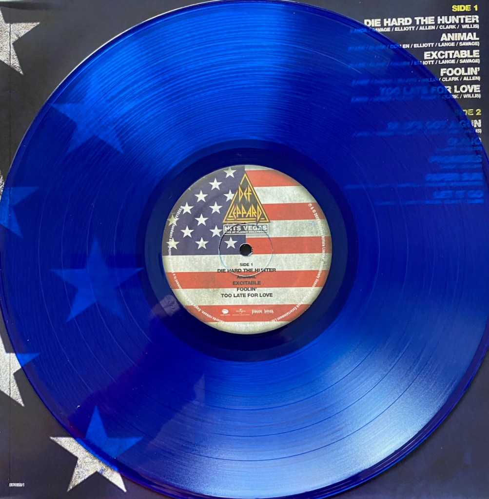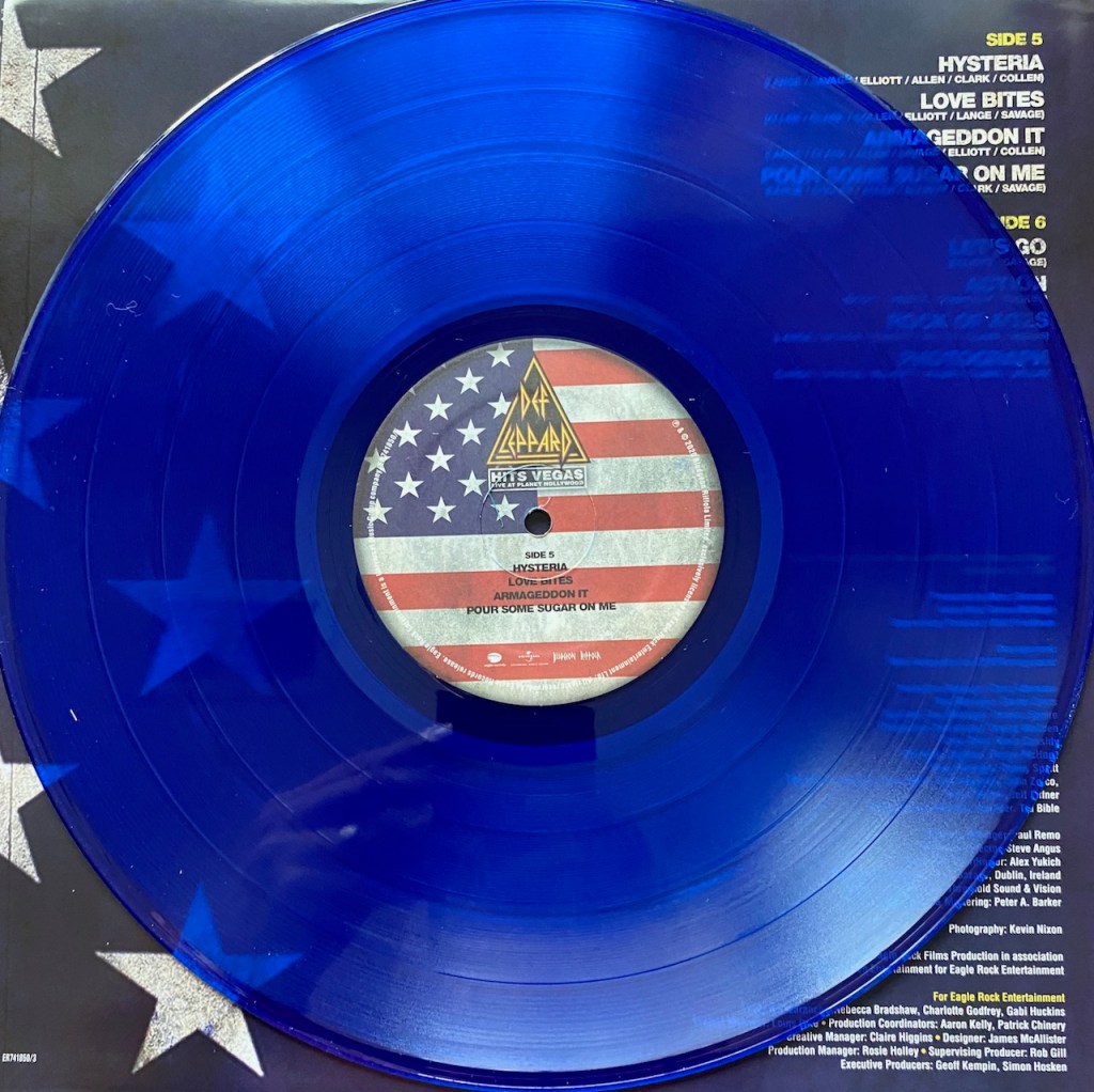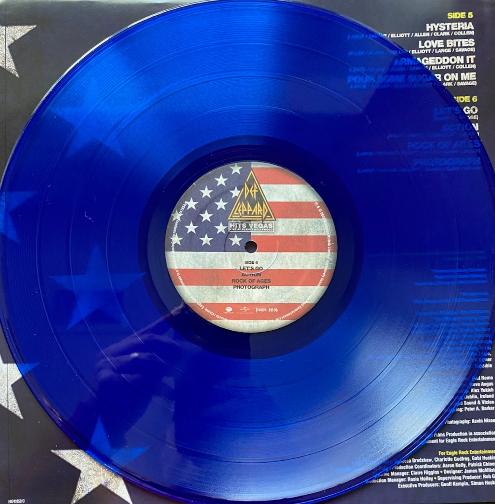 In 2020, Def Leppard released a really cool box set called London to Vegas. It had 2 shows, one from the 02 in London where they played the entire Hysteria album live and the other called ‘Hits Vegas: Live at Planet Hollywood’ where Def Leppard did another residency. The set had CDs for the shows as well as Blu Ray (or DVD) so you could watch it too. But that wasn’t all. They also released the albums individually and I bought each one as well, but this time on Vinyl.