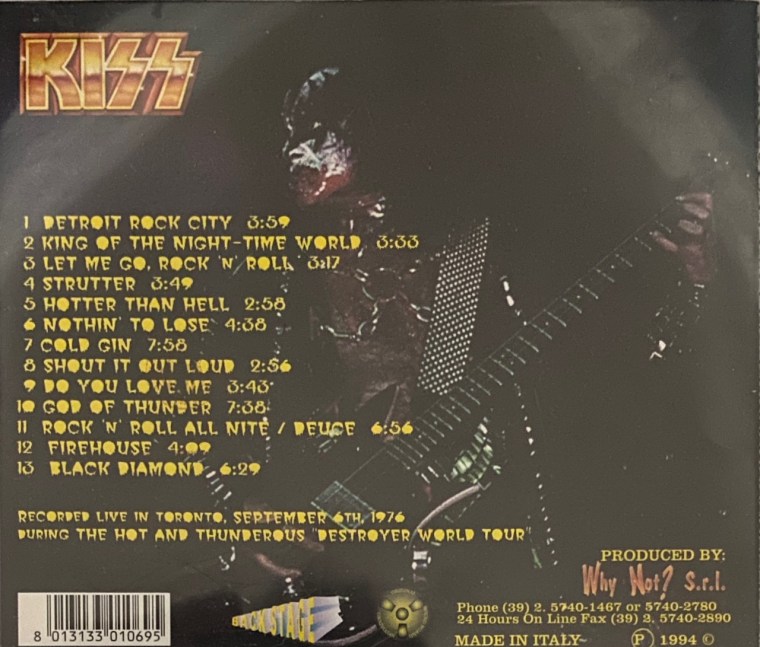 We are going in chronological order for these three shows, so last time we did ‘Unnecessary Evil: Anaheim Stadium August 20, 1976’. Then it was ‘The Spirit of ’76: Richfield Coliseum, September 3, 1976’. We are now to the final of the 3 shows from the Destroyer Tour. This one is called ‘Flaming Years’ and it was recorded on September 6, 1976 in Toronto Canada at Varsity Stadium. This bootleg was released in 1994 by Backstage and it was released in Italy. The CD was purchased on March 27, 1995 as the receipt was still in the CD and John paid $29.25 for it which I imagine that was a lot back in the day.