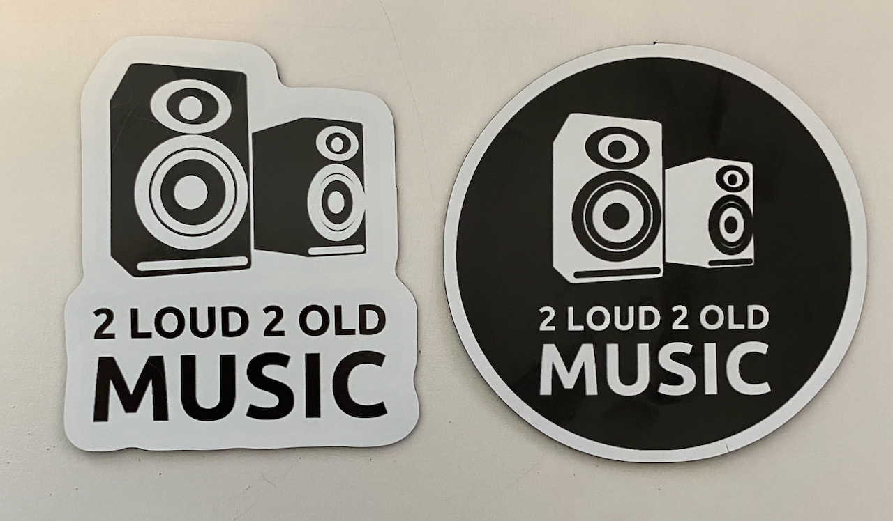 And if you only want a little something to remember 2 Loud 2 Old Music by, then grab yourself a sticker, or a magnet (mine’s on my car) or even a pin.