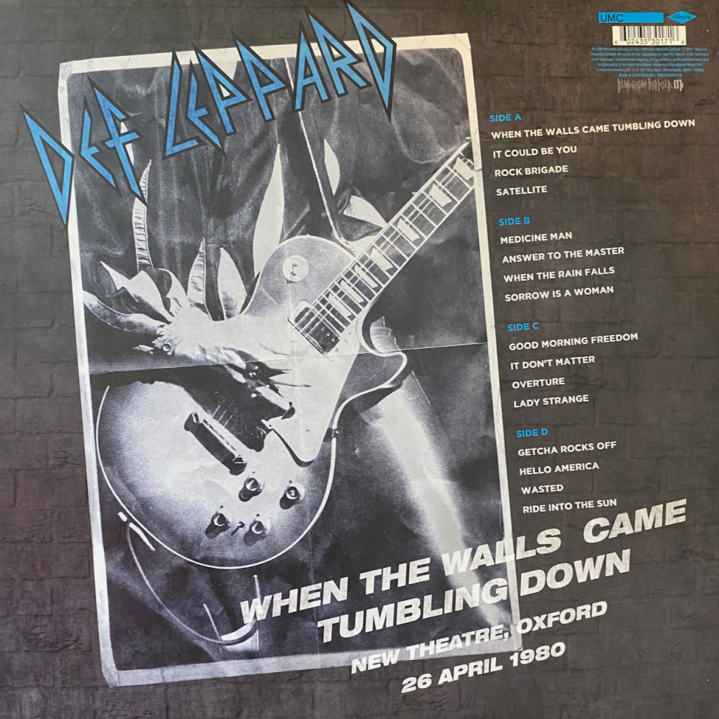 The first set of songs were recorded in June 1979 and they were for a show hosted by DJ Andy Peebles. The really cool thing about these four songs is that all the guitar parts were handled by Steve Clark. Pete Willis was unable to get off work to record the sessions. This was back when the band was still trying to make it. Those 4 songs that were recorded were “Glad I’m Alive”, “Sorrow is a Woman”, “Wasted” and “Answer to the Master”. The guitar sound on these songs all sound a little different as a result, There isn’t as much depth as the guitar parts sound too similar than when Pete is on it as this guitars sound different than Steve’s.