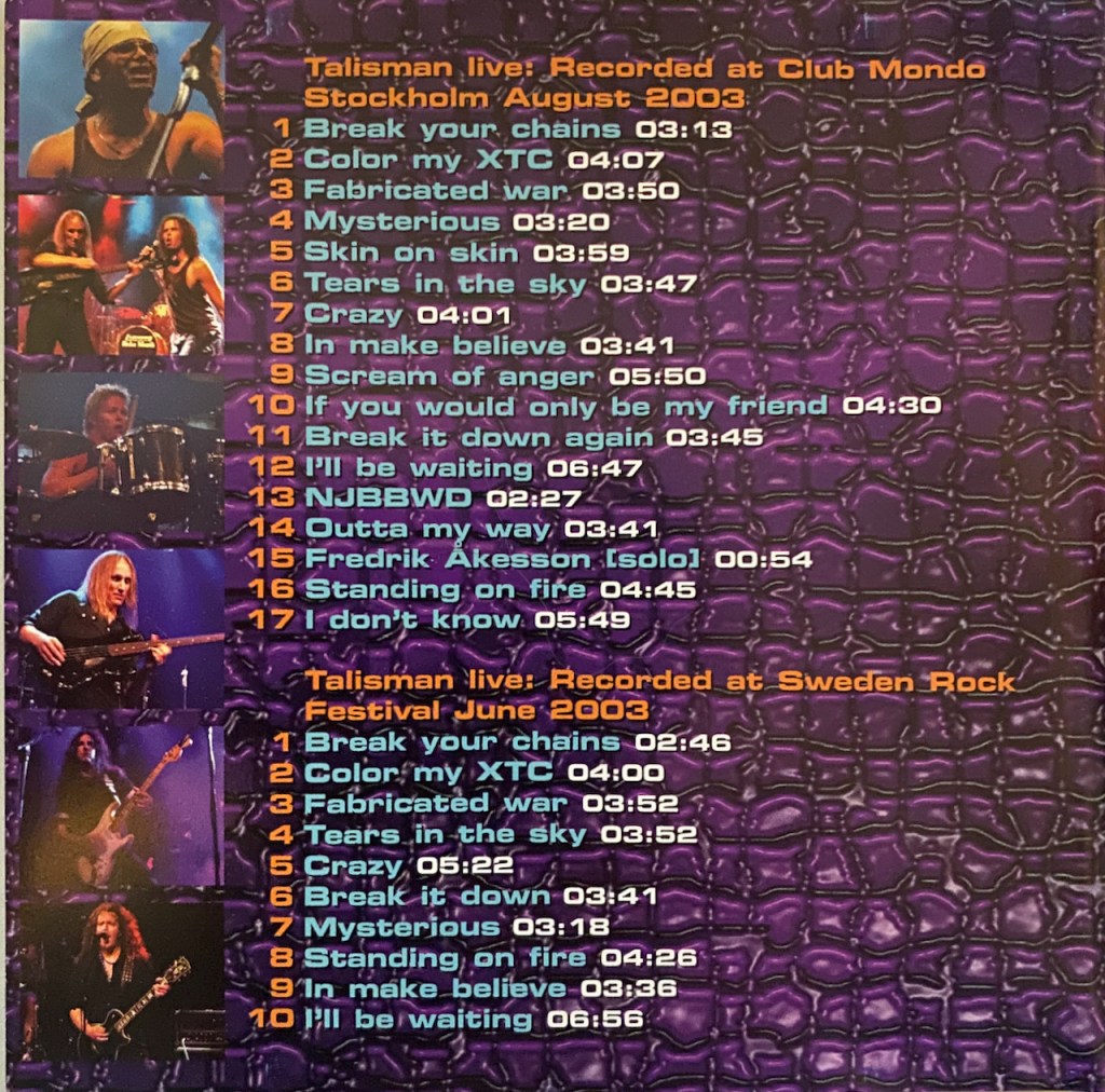 During the early 2000’s, Marcel Jacob came forward and revealed he was suffering from chronic rheumatism and it would limit his live shows. By 2003, he must have felt up to it because the band played several festivals during that Summer and thankfully for us, a lot of those were recorded. ‘Live in Stockholm’ is the 4th live recording released by the Swedish-American band Talisman. The show was recorded at Club Mondo in Stockholm, Sweden back to August 4th, 2003. You have heard most of this show before as it was previously released as ‘Five Men Live’ back in 2005 which we talked about previously. It was also on the Talisman DVD called ‘The World’s Best Kept Secret.