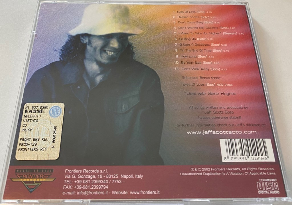 The new album was going to be done in the style of say Journey and Survivor which means it is power ballad heavy and not in a bad way. The songs were mostly done over the past few years for various projects that they didn’t quite fit so were never used and some new and all but one written by Soto. Jeff played most of the instruments and sang, but he was worried the label might not like that fact so he credited numerous fake people on the album. First is someone by the name of Michael Scott which is just Jeff’s middle name and his son’s middle name put together. He also credited two names that appeared in Jerky Boy’s episodes, Sam Isanogud and Mikos Scarbacci. There was also Jay Michael another reference to his son as well as Anthony Papa who is real, but didn’t actually play. That doesn’t mean there aren’t other musicians on the album because we do get Gary Schutt, Glenn Hughes and numerous Soto friends.