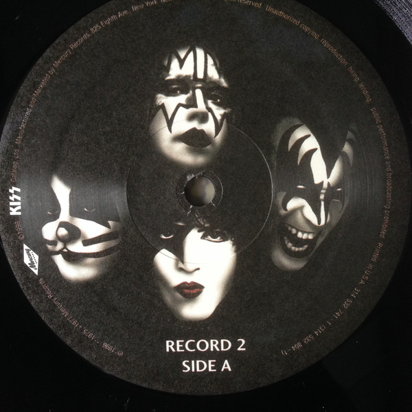 The remaining of Record 1 are three tracks from ‘Alive!’ which are “Rock Bottom”, “Parasite” and “Firehouse” and one track from ‘Alive II’ which is “I Stole Your Love” and “Calling Dr. Love”. If you don’t have those two albums, then these songs are classic and worth having. But if you don’t, you aren’t really a Kiss fan are you…sorry I’m judging and that isn’t nice…but seriously why don’t you own those two albums…better than this crap!!