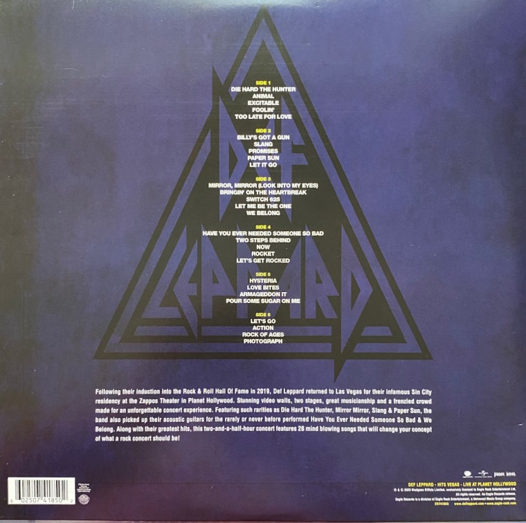In 2020, Def Leppard released a really cool box set called London to Vegas. It had 2 shows, one from the 02 in London where they played the entire Hysteria album live and the other called ‘Hits Vegas: Live at Planet Hollywood’ where Def Leppard did another residency. The set had CDs for the shows as well as Blu Ray (or DVD) so you could watch it too. But that wasn’t all. They also released the albums individually and I bought each one as well, but this time on Vinyl.