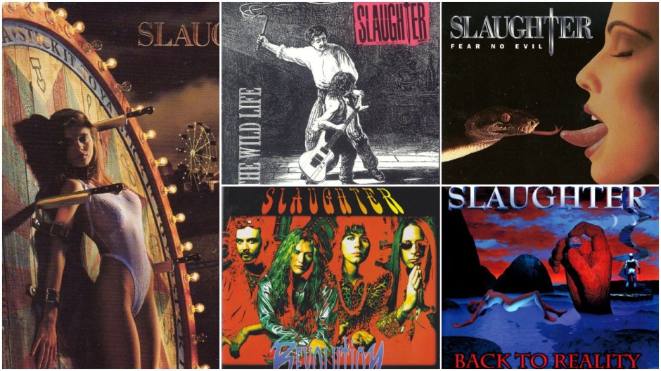 Founding members Mark Slaughter and Dana Strum were in a little band called Vinnie Vincent’s Invasion. When that imploded due to its namesake, they decided to form a new band and they liked Mark’s last name and so it became Slaughter. The decision was easy because the VVI label, Chrysalis, just transferred the Invasion contract to them and let them form a band. Pretty easy!! They added guitarist Tim Kelly who has since passed away in 1998 and drummer Blas Elias.