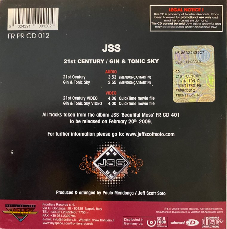 The CD contains two songs from the album, “21st Century” and “Gin & Tonic Sky”. Not only that, it has the two promotional videos that were shot for those songs as well. If you have the 2 CD version of the album, like I do, you already have these videos, but if you don’t, then this is cool to have as well. Let’s talk through the two songs.