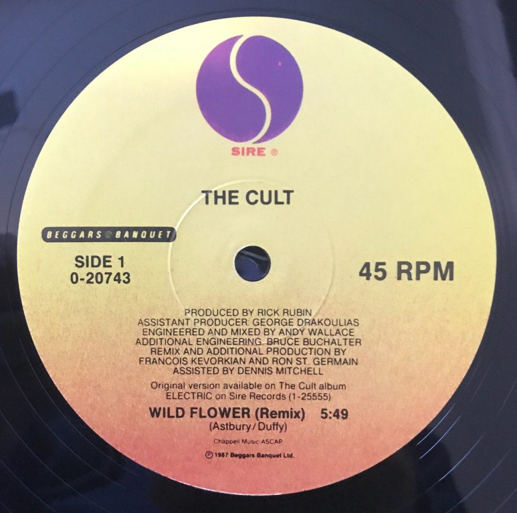Continuing the saga of all the 12″ Singles I picked up at the big Metalocalypse sell at Noble Records, we are now on a 4 week run of singles from The Cult. First up was from the band’s 1985 album ‘Love’ with “She Sells Sanctuary”. This time we are going to look at the lead track and third single form the band’s 1987 album ‘Electric’ with the song “Wild Flower”. The 12″ this time around doesn’t have any other tracks other than “Wild Flower”, but you do get three versions. You get the the Remix version, the Dub version and the original LP Version.