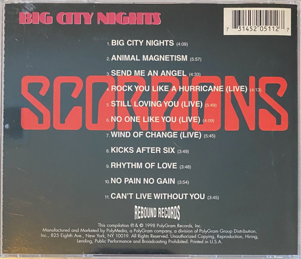 “Big City Nights” is up first and it is off the album ‘Love at First Sting’ and was the third single off the album. This one leans more to the 80’s pop rock, very radio friendly and although a rocker, a little calmer. Yet, it is very effective with its cool riff, contagious chorus and of course, that great Klaus vocal. What is there not to like.
