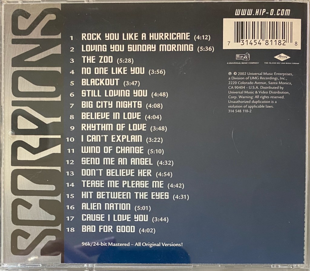 Scorpions is no stranger to releasing compilation albums. In fact, there are 28 official greatest hits compilations over their career. That is insane. Out of those 28, some are worth getting, like ‘Deadly Sting’ or ‘Best of Rockers ‘n Ballads’ and some are not…like this one!! This is a complete money grab except it was released at a time where Scorpions weren’t getting much publicity so I am sure this was overlooked by everyone. There are no unreleased tracks, no single mixes, no nothing excited that would make this worth getting. So why do I have it? I found it in a bin for like $2 so why not. It isn’t worth anymore than that, I promise!