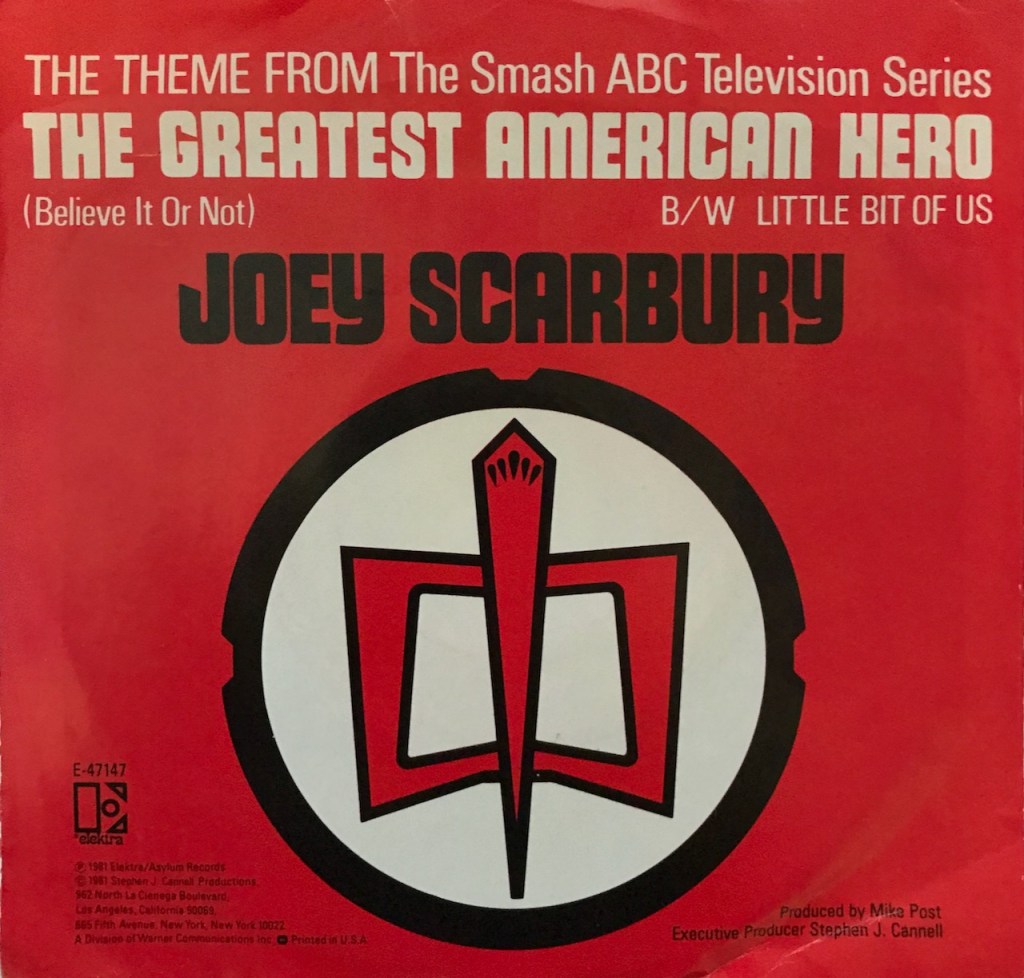 One of the really great things about the show was the theme song. Do you remember theme songs for TV shows? They don’t really do those much nowadays. This one was called “Theme From The Greatest American Hero” or better known as “Believe It or Not” as the other is just too long to say. It was written by TV theme songwriters Mike Post and Stephen Geyer, but performed by Joey Scarbury. The song appeared on Joey’s debut album which was called ‘America’s Greatest Hero’ so it doesn’t steal directly the shows name exactly.