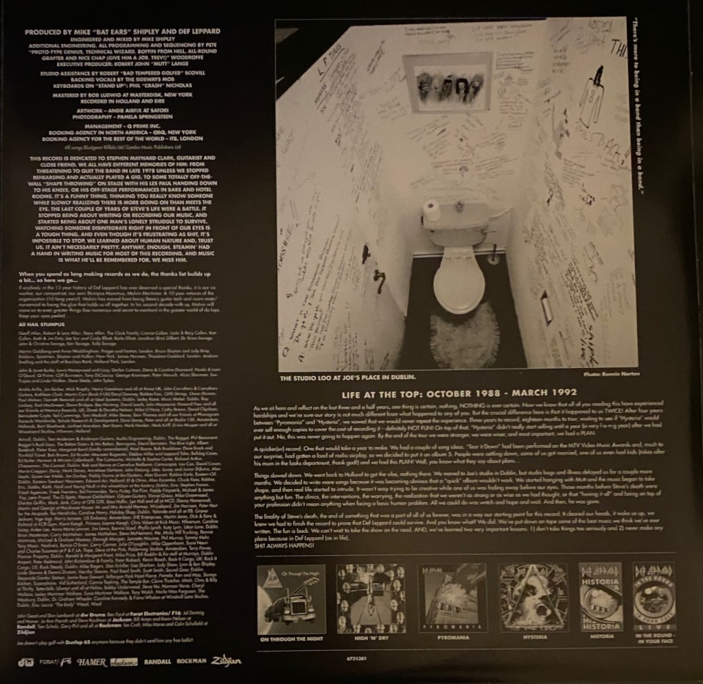 The band was devastated. However, they didn’t want to stop and kept going, but only as a four-piece. No new member was added for the record. It took months after Steve’s death before their heart was back in to it. The band also ended up having to do the album without long-time producer, Robert John “Mutt” Lange, as he was busy working with Bryan Adams and his ‘Waking Up the Neighbors’ album. Mutt did wind up as the “Executive Producer” on the album. Mike Shipley helped the band as both engineer and co-producer as he had worked with the band for years.